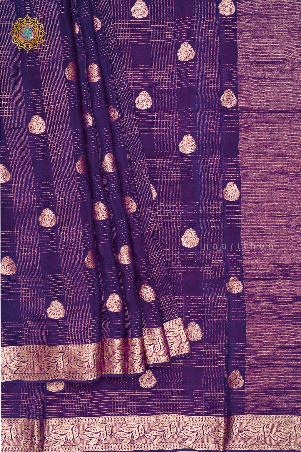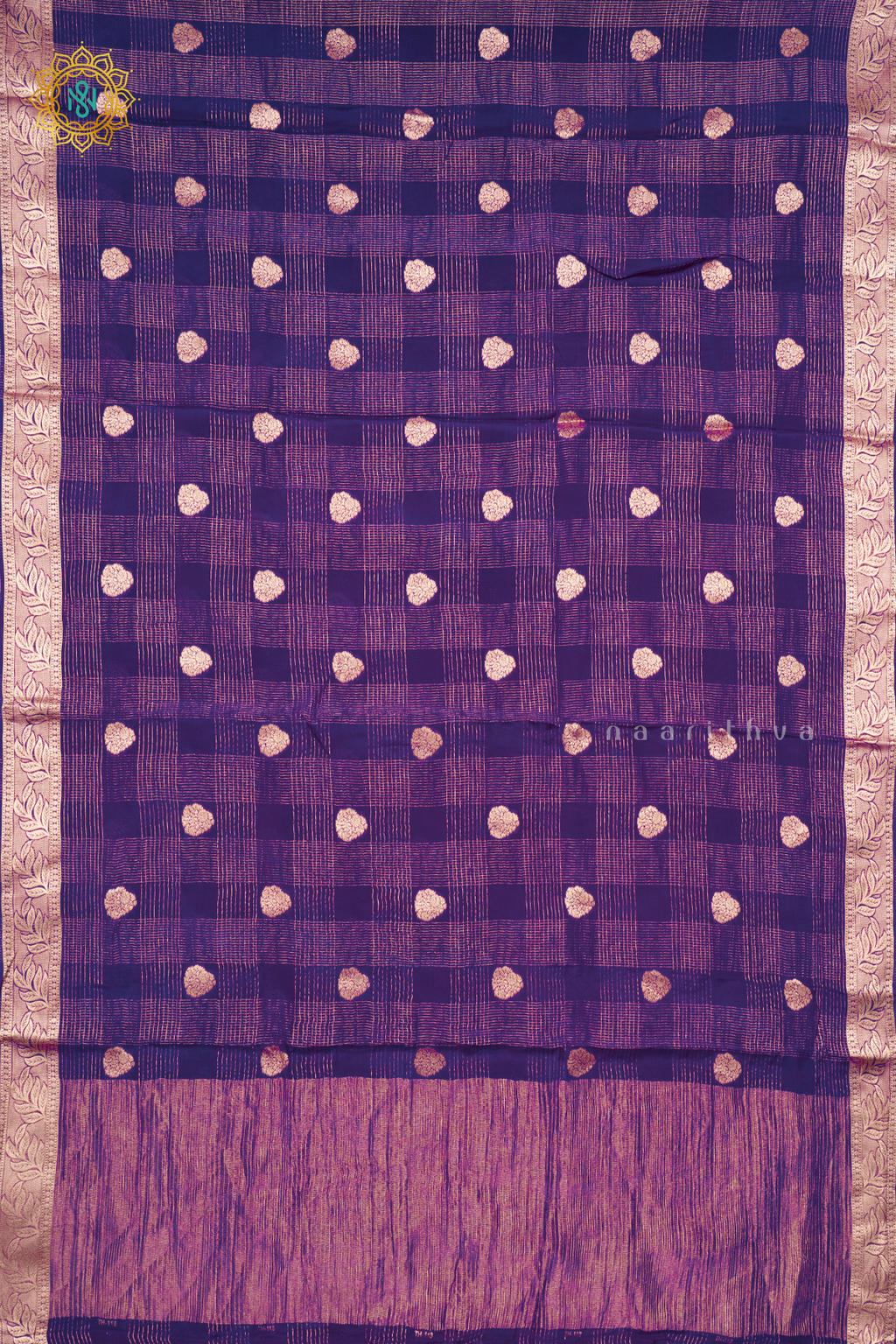 • Design : Zari Checks & Buttas On The Body With Zari Border, Pallu & Contrast Blouse