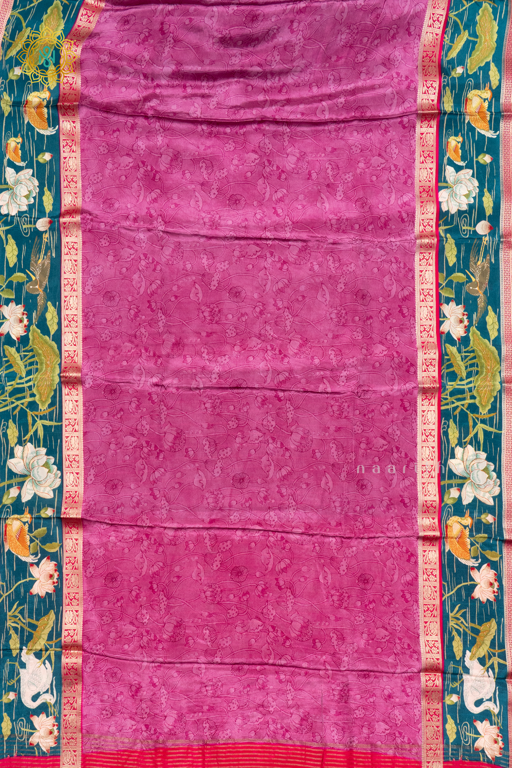 PINK WITH TEAL BLUE - SEMI CREPE SILK