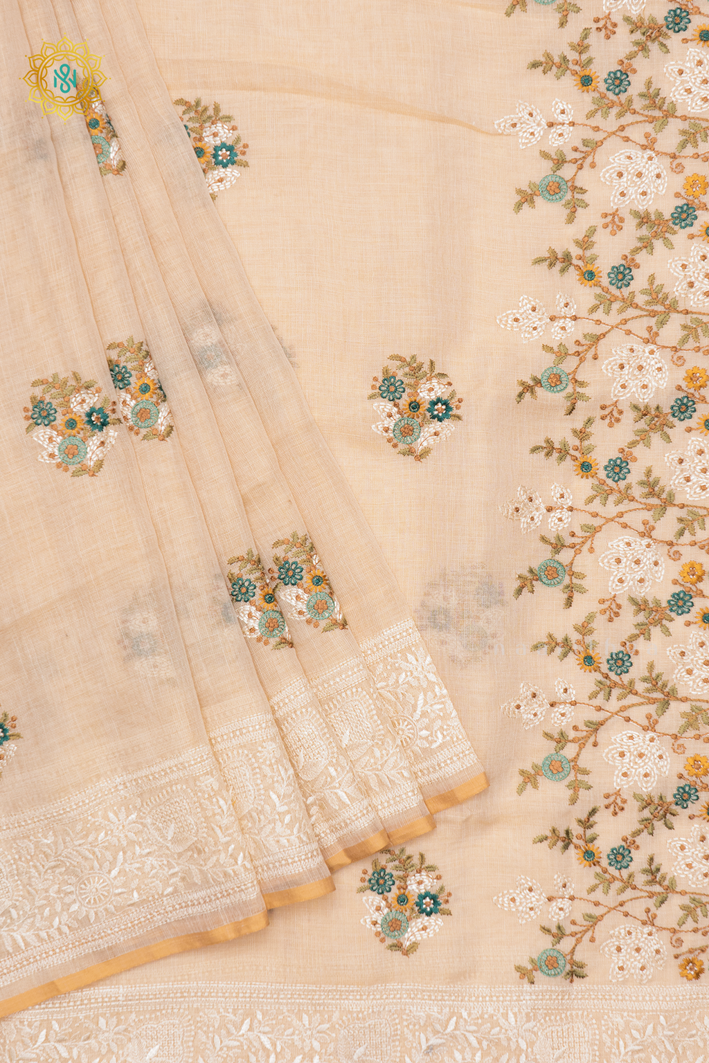 • Design : Embroidery Buttas On The Body With Tissue Border, Pallu & Blouse