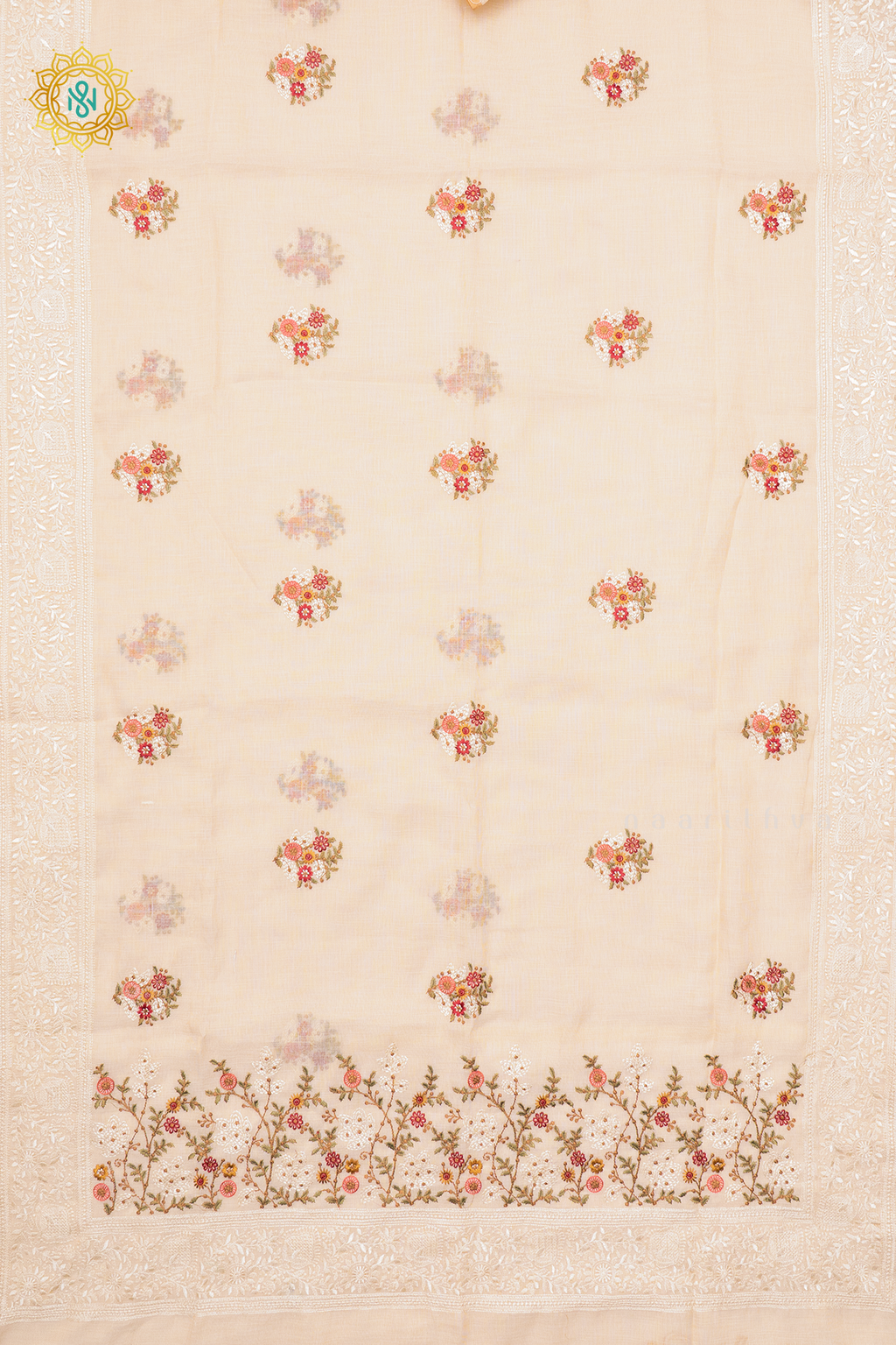 • Design : Embroidery Buttas On The Body With Tissue Border, Pallu & Blouse
