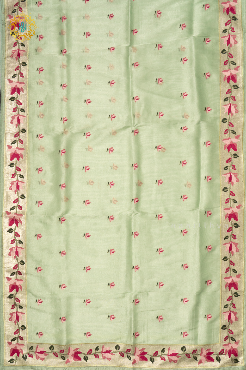 • Design : Zai Buttas & Tissue Body With Embroidery Zari Border, Pallu & Blouse