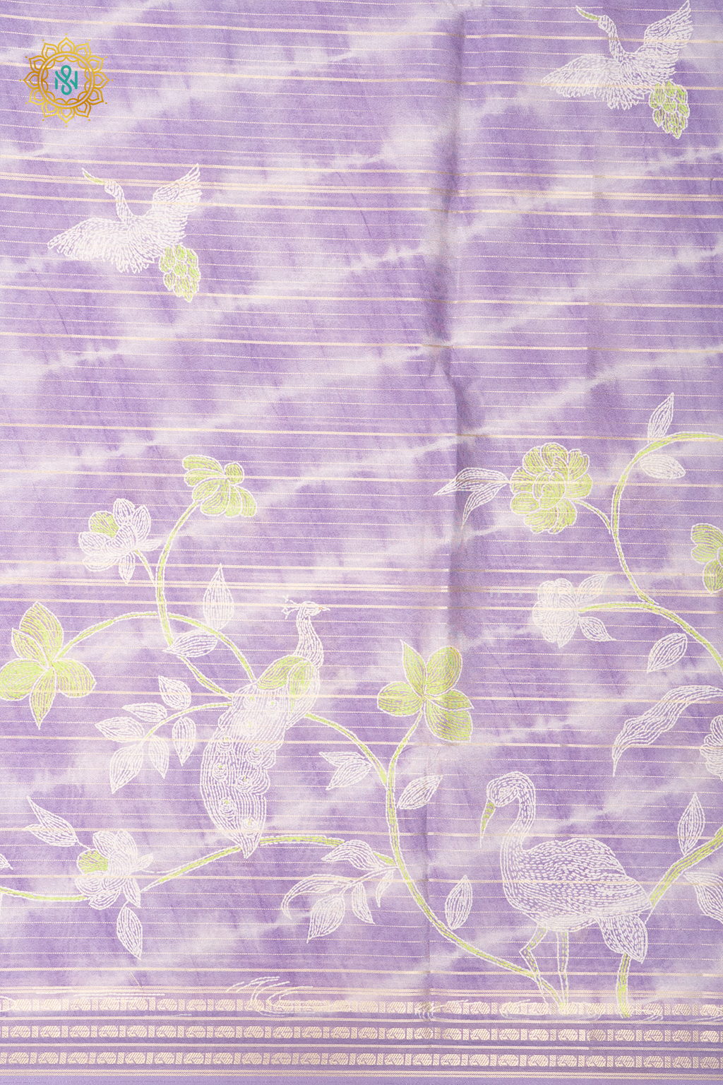 • Design : Digital Print & Zari Stripes On The Body With Zari Border, Pallu & Blouse