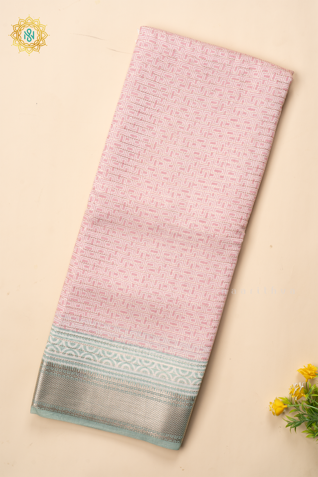 • Design : Zari Stripes & Printed Body With Contrast Zari Border, Pallu & Blouse
