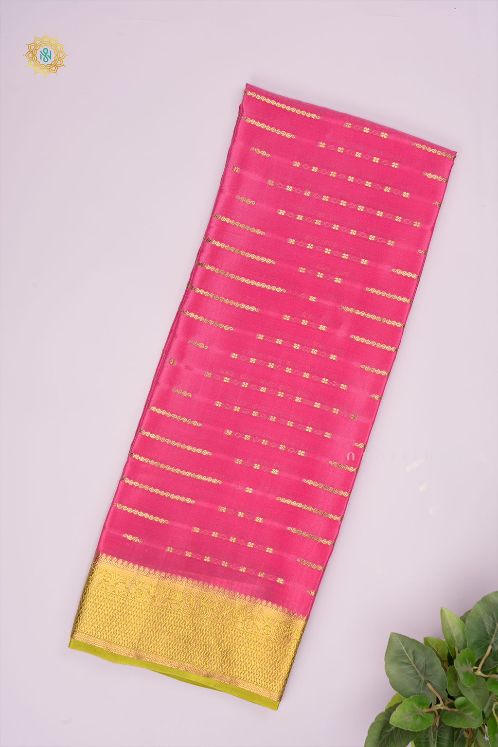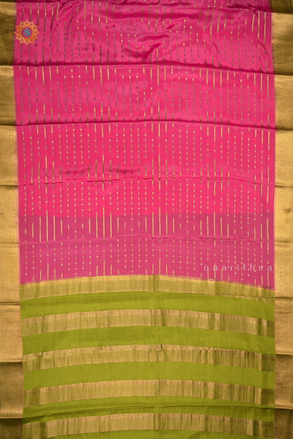 PINK WITH OLIVE GREEN - PURE MYSORE CREPE SILK