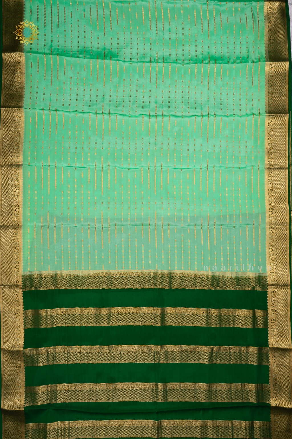 AQUA GREEN WITH BOTTLE GREEN - PURE MYSORE CREPE SILK
