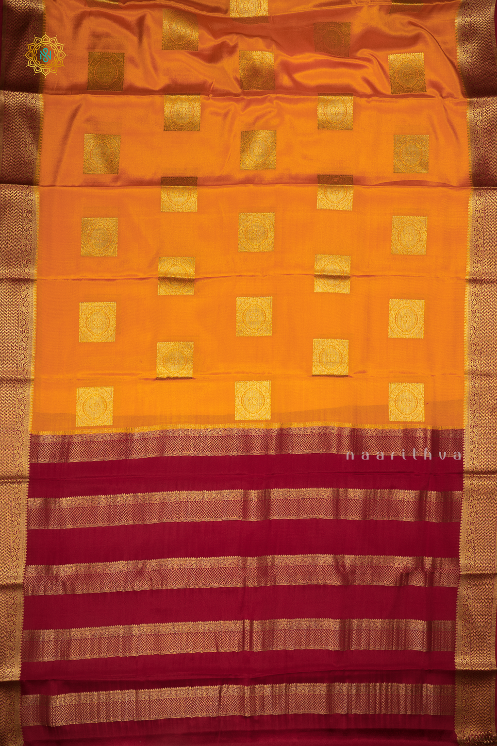YELLOW WITH MAROON - PURE MYSORE CREPE SILK