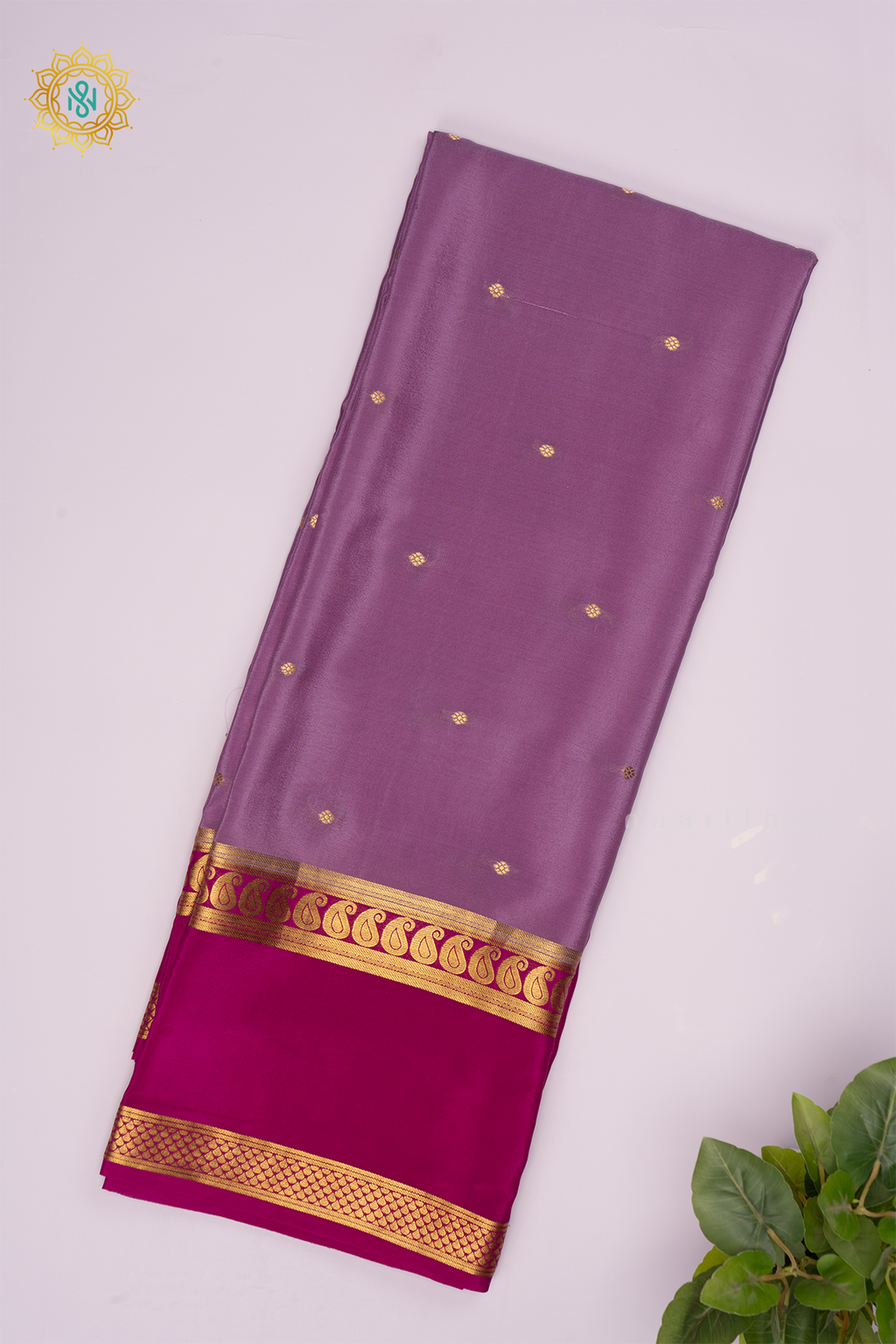 LAVENDER WITH RANI PINK - PURE MYSORE CREPE SILK