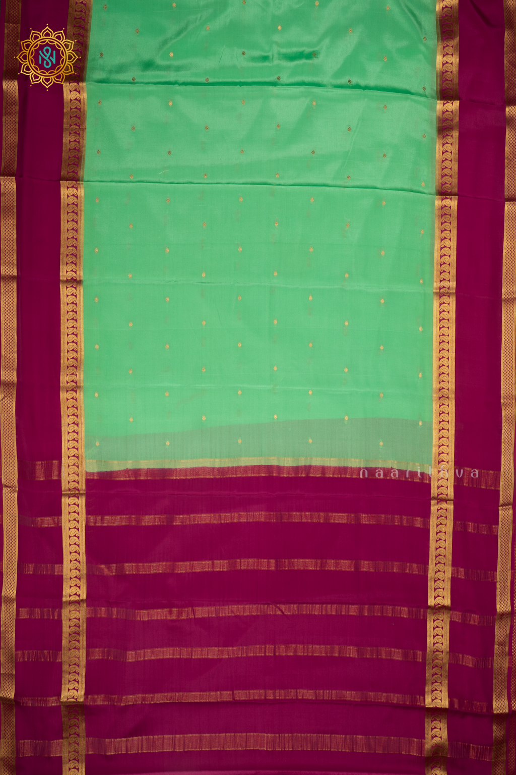 PISTA GREEN WITH RANI PINK - PURE MYSORE CREPE SILK