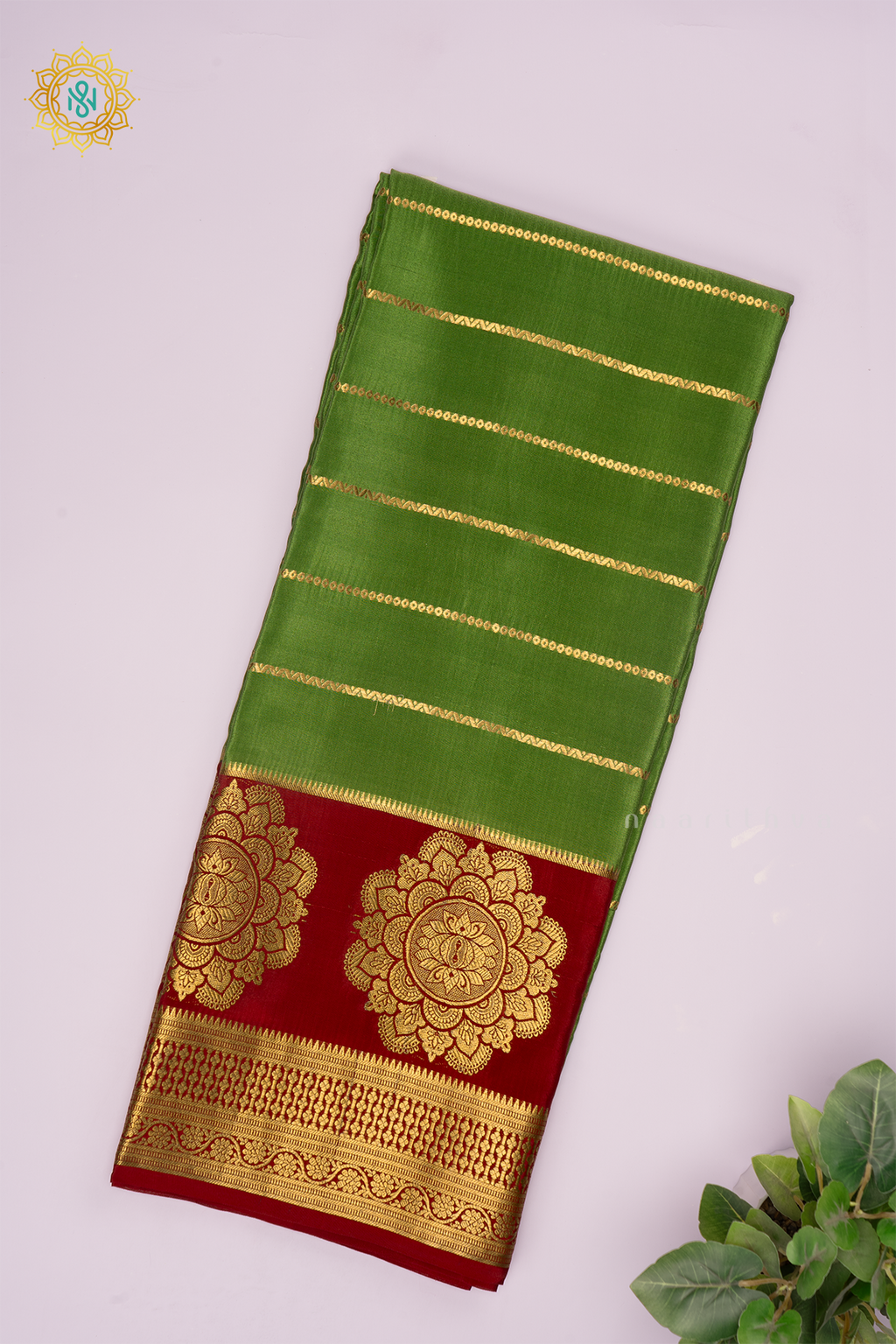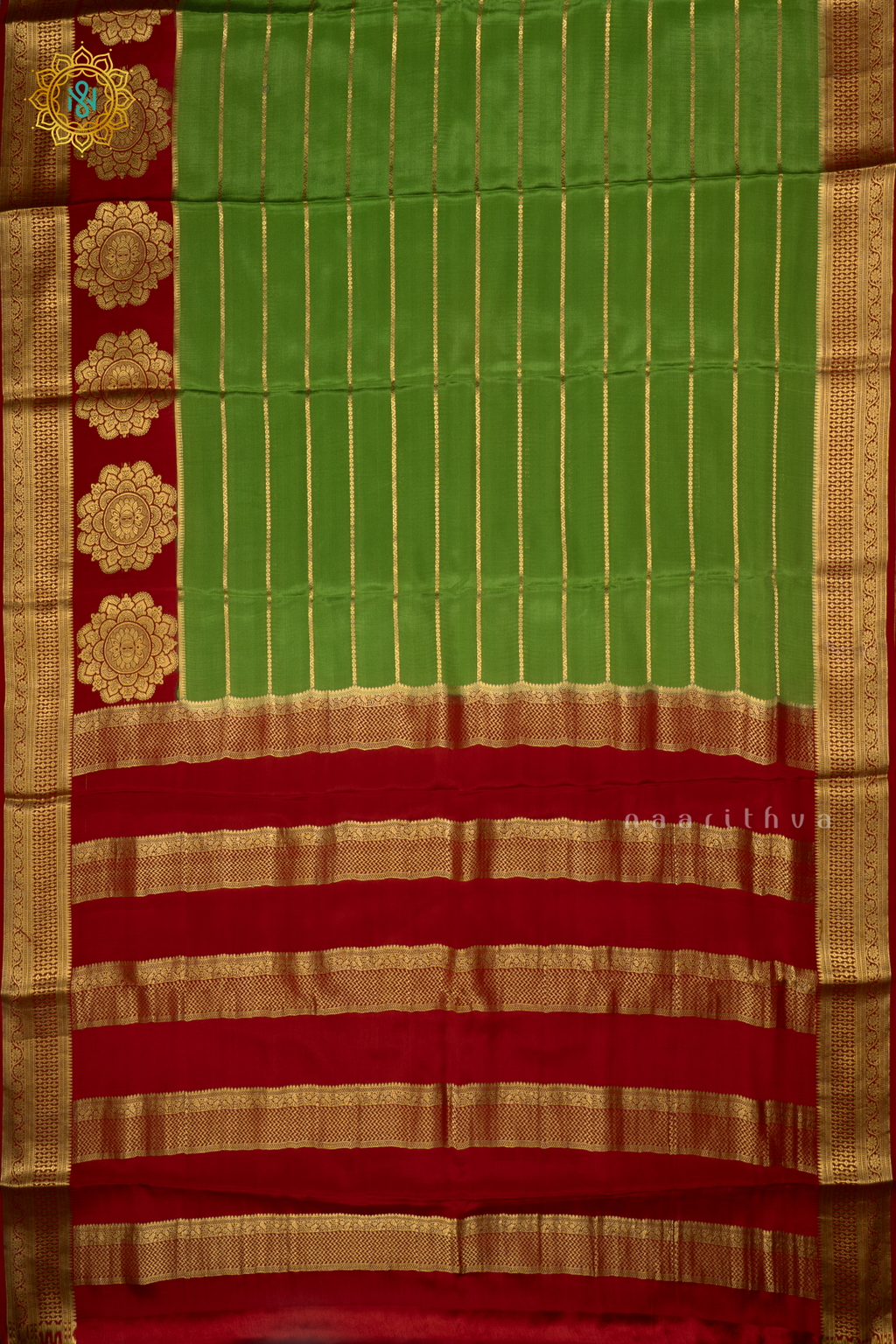 PARROT GREEN WITH RED - PURE MYSORE CREPE SILK