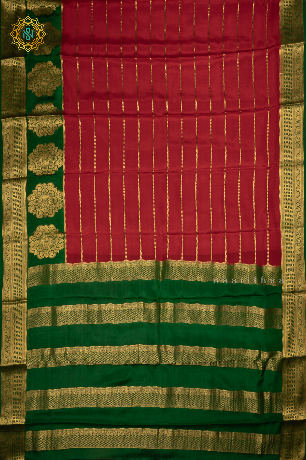 RED WITH GREEN - PURE MYSORE CREPE SILK