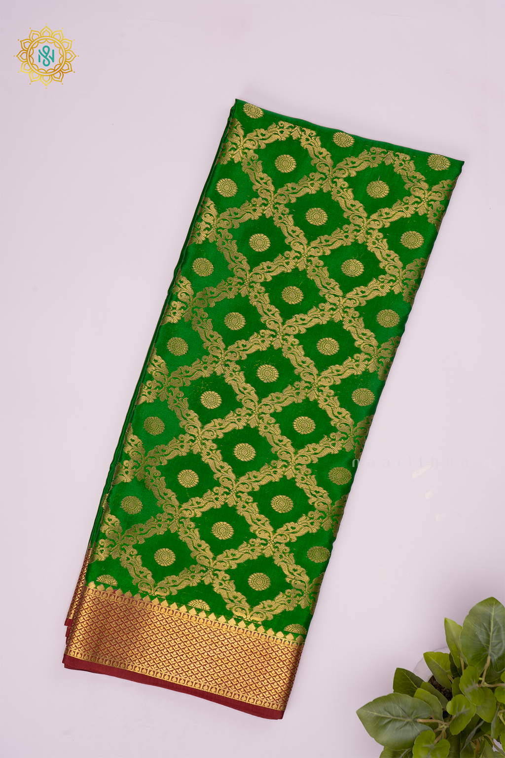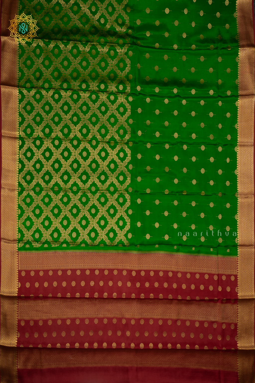 BOTTLE GREEN WITH RED - PURE MYSORE CREPE SILK