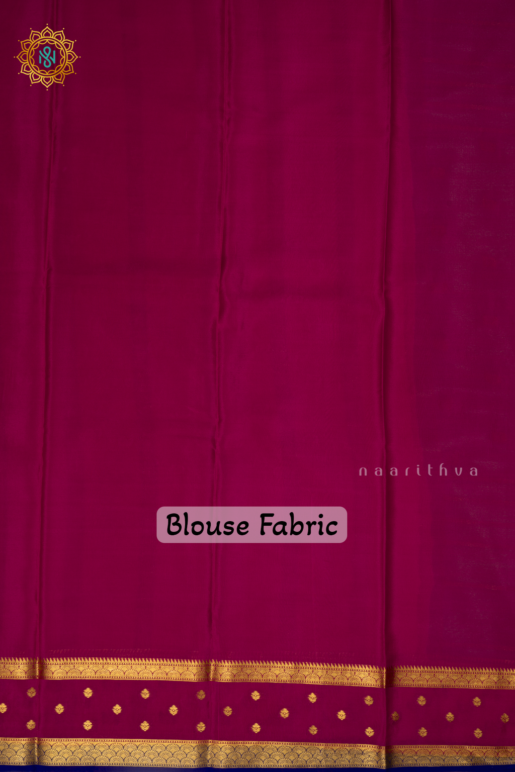 PISTA GREEN WITH RANI PINK AND NAVY BLUE - PURE MYSORE CREPE SILK