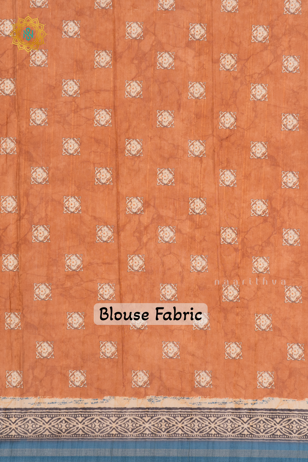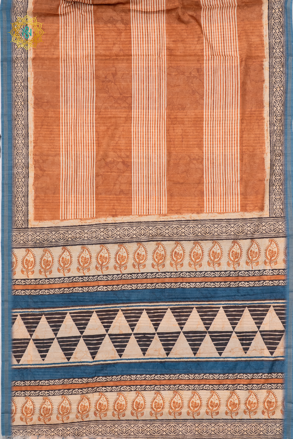 RUST ORANGE WITH BLUE - SEMI TUSSAR SILK