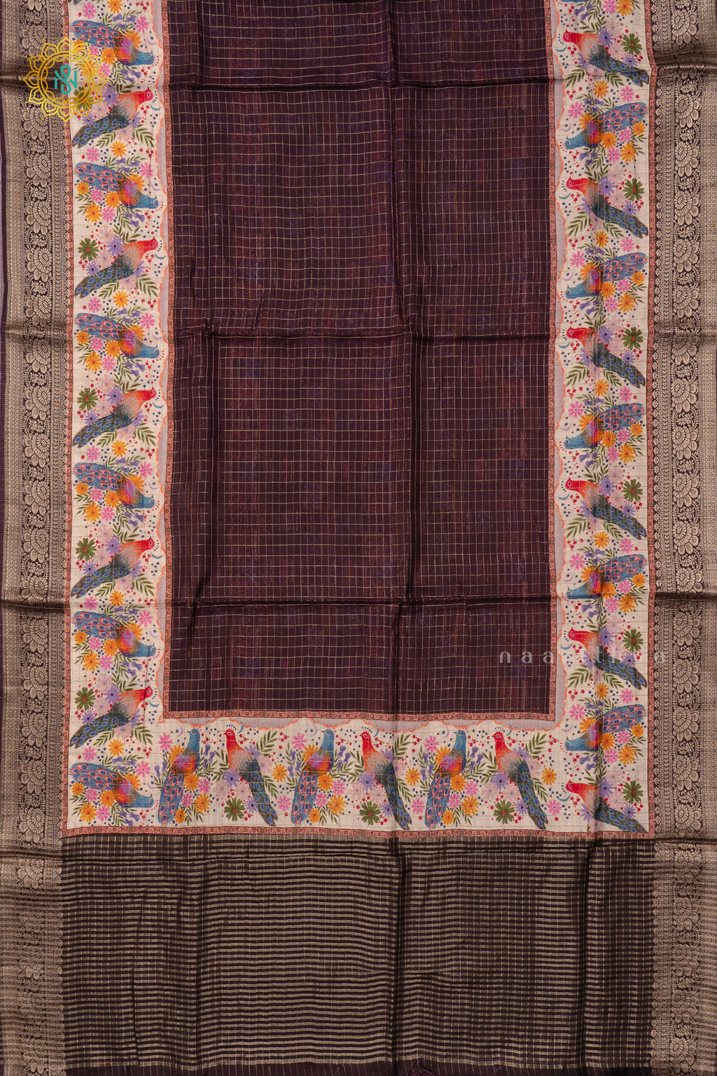 • Design : Printed Body With Zari Checks , Zari Border, Pallu & Blouse