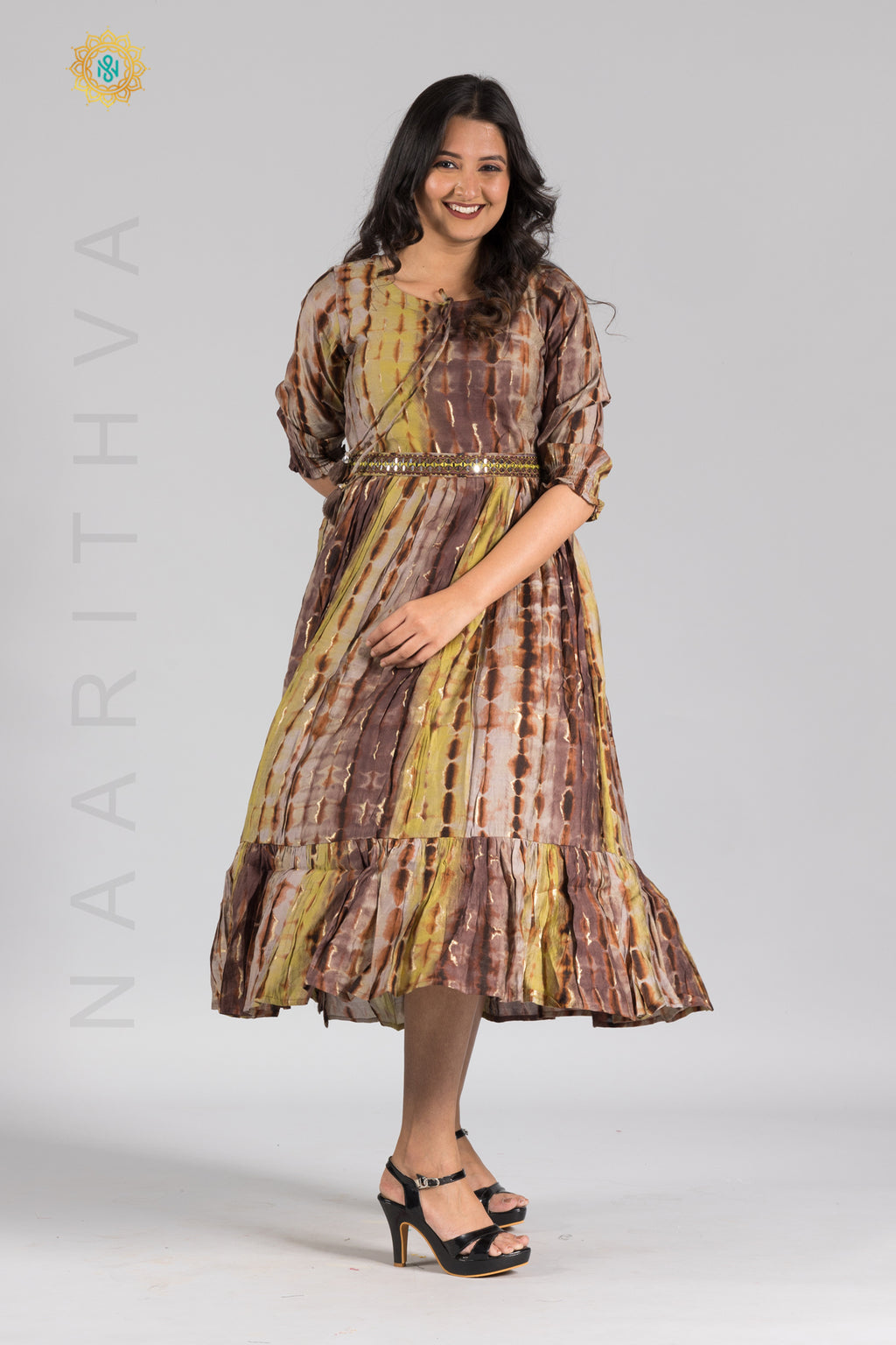 UMBRELLA PATTERN FOIL PRINTED DOUBLE LAYERED KURTI