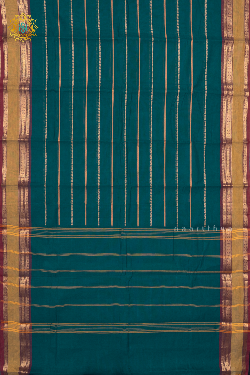 PEACOCK BLUE WITH WINE - CHETTINAD COTTON
