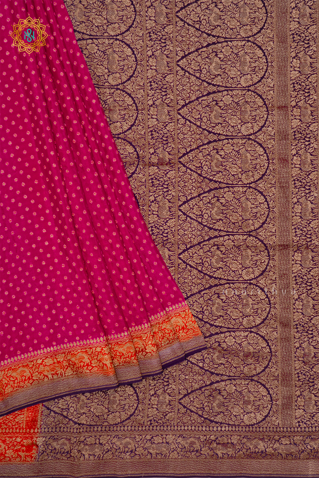 PINK WITH ORANGE & DEEP WINE - PURE BANARASI CREPE SILK