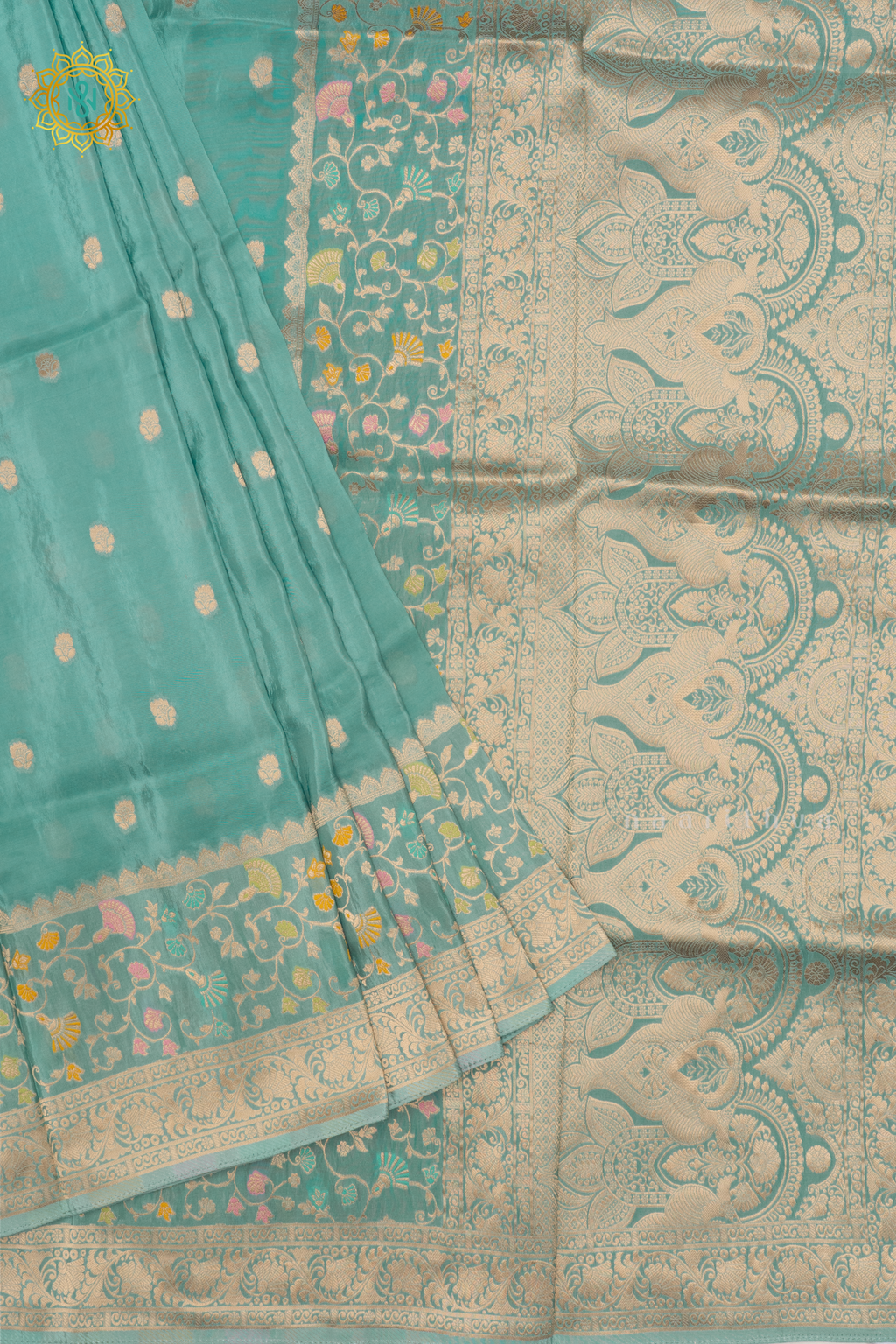 • Design : Zari Buttas On The Body With Zari Border, Pallu & Blouse