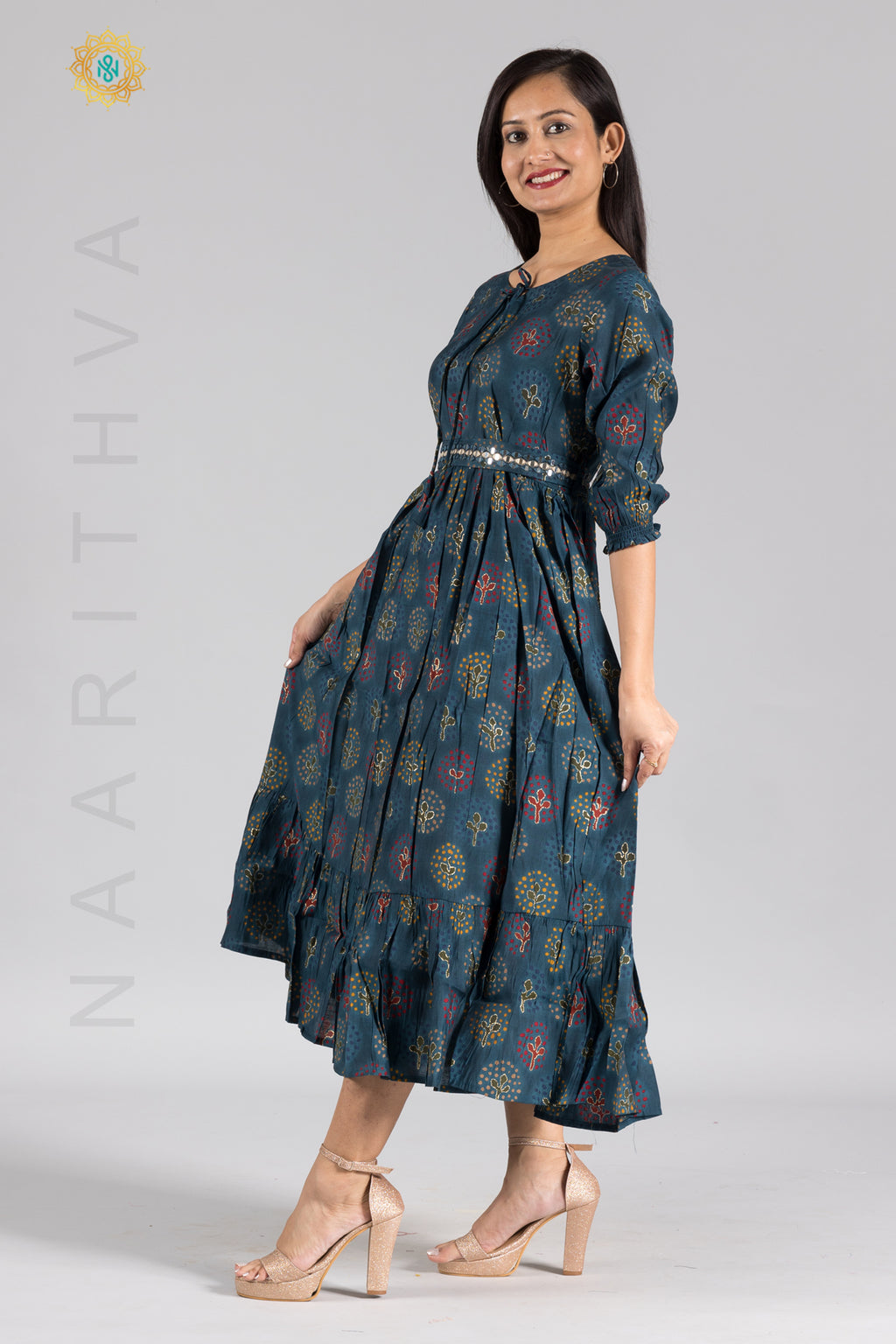 UMBRELLA PATTERN FOIL PRINTED DOUBLE LAYERED KURTI