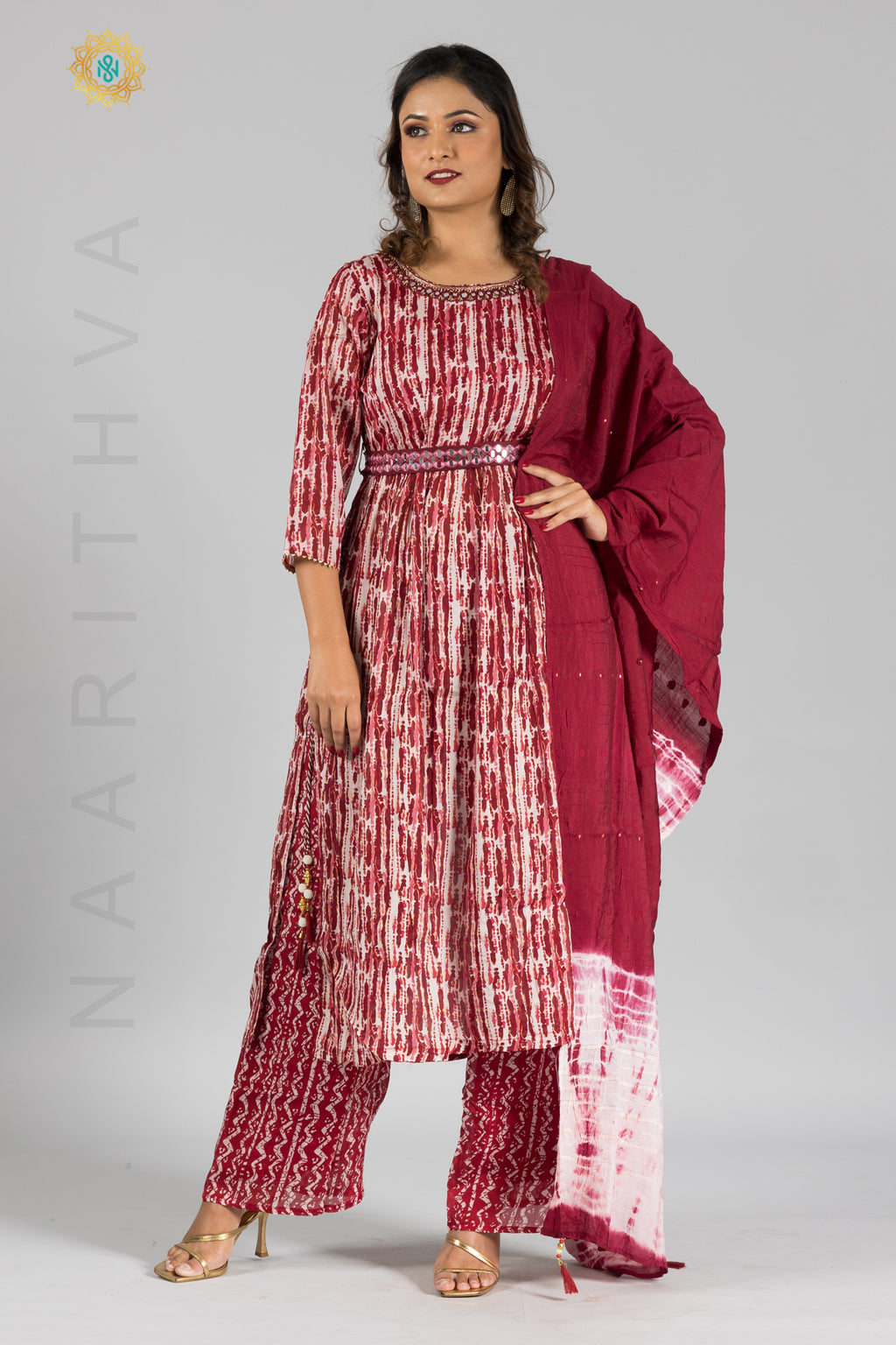 MAROON & WHITE - PARTY WEAR NAYRA CUT SALWAR SUIT WITH PARALLEL CUT PANT & DUPATTA