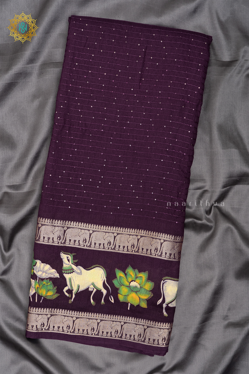 • Design : Sequins Work On The Body With Zari Border, Pallu & Blouse