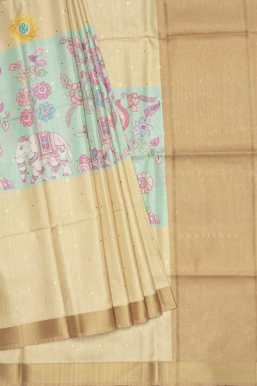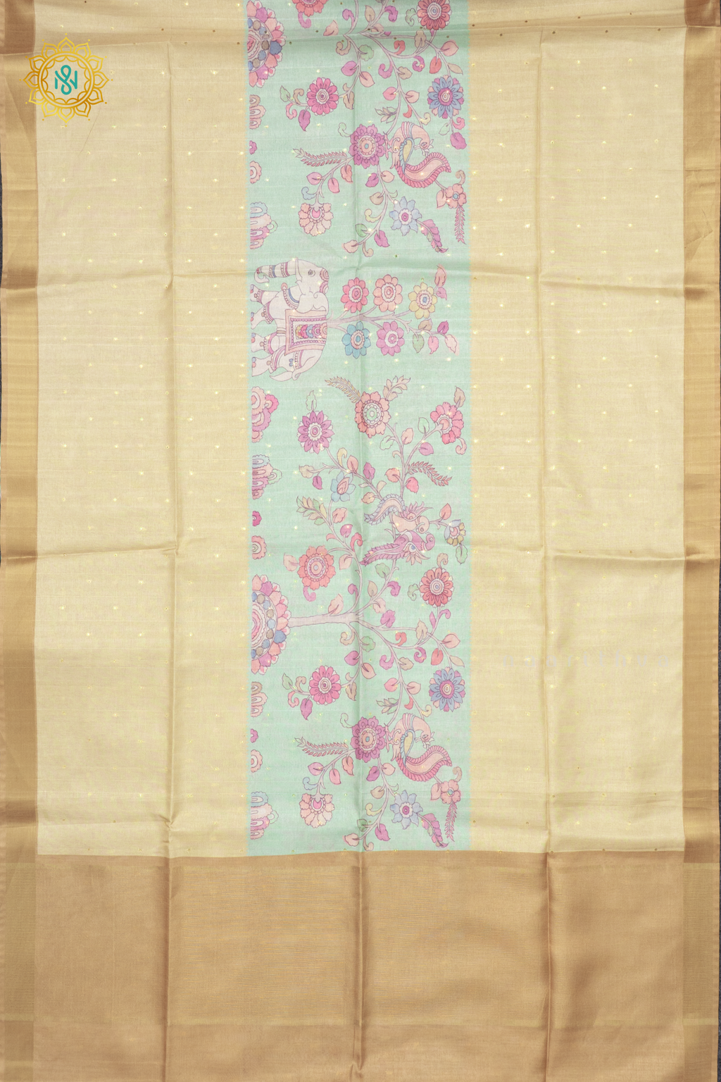 YELLOW WITH AQUA GREEN - SEMI TUSSAR