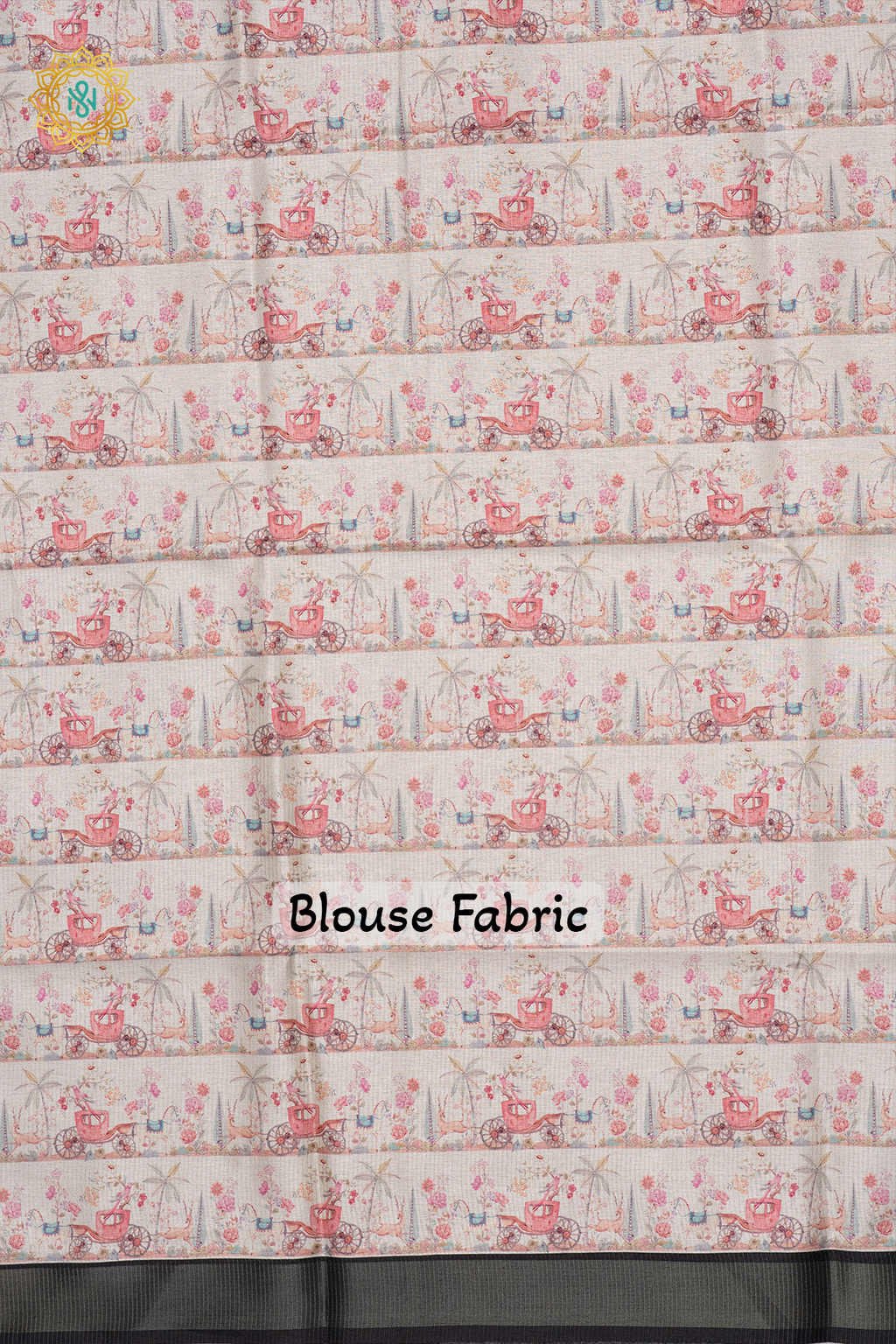 • Design :  Printed Body With Contrast Border, Pallu & Blouse