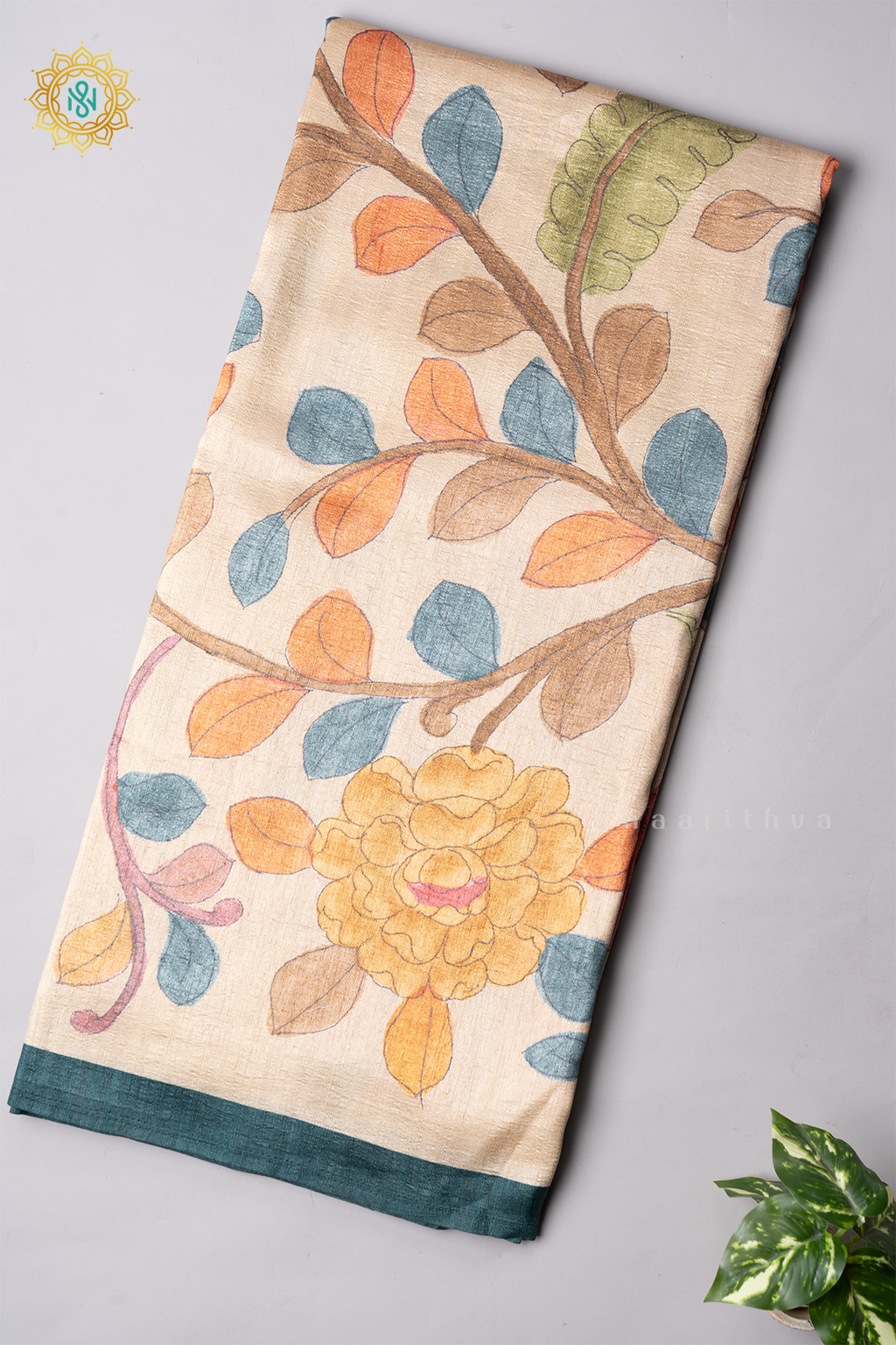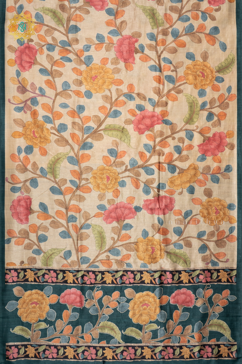 OFF WHITE WITH PEACOCK GREEN - SEMI GICHA TUSSAR