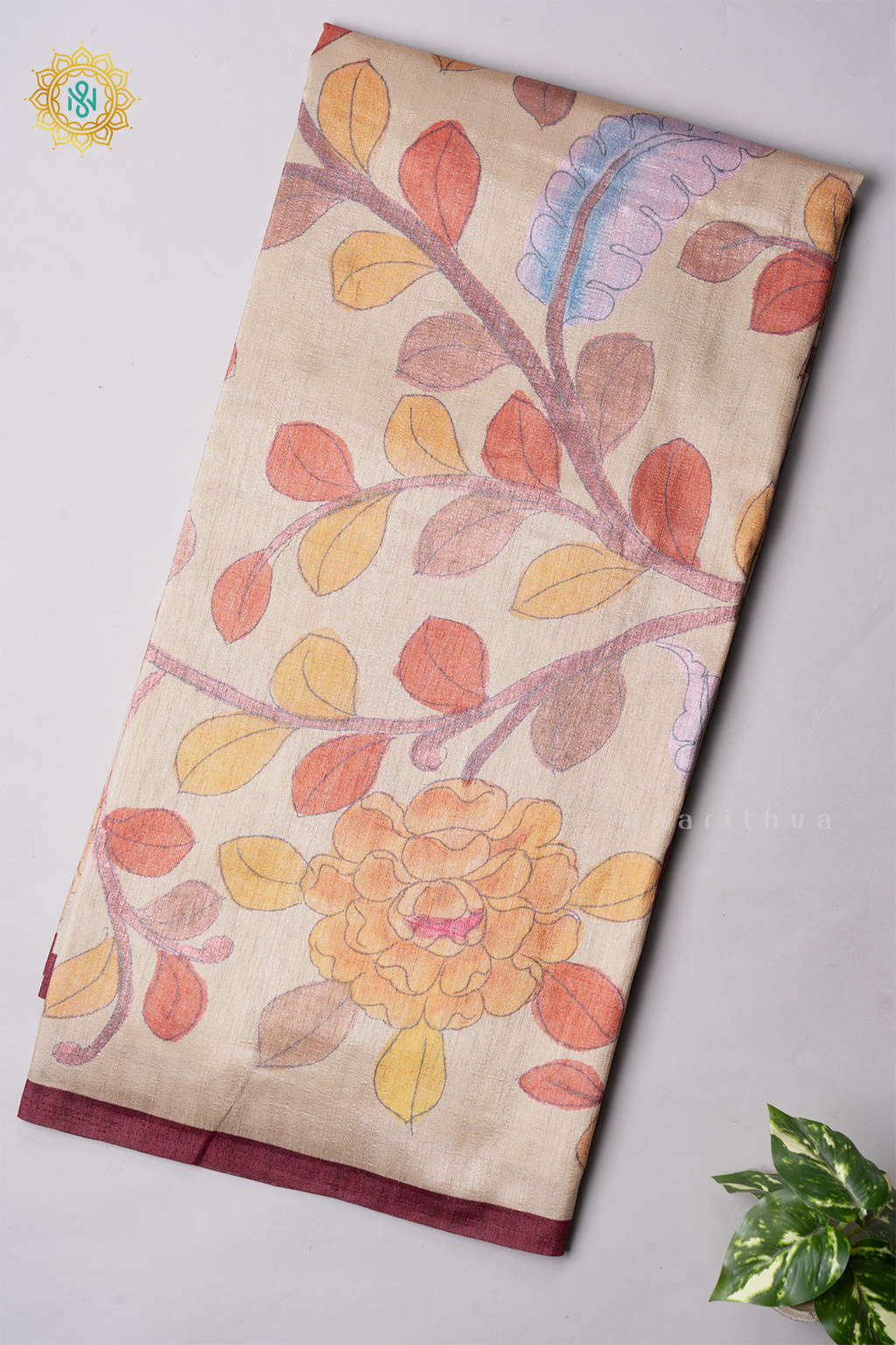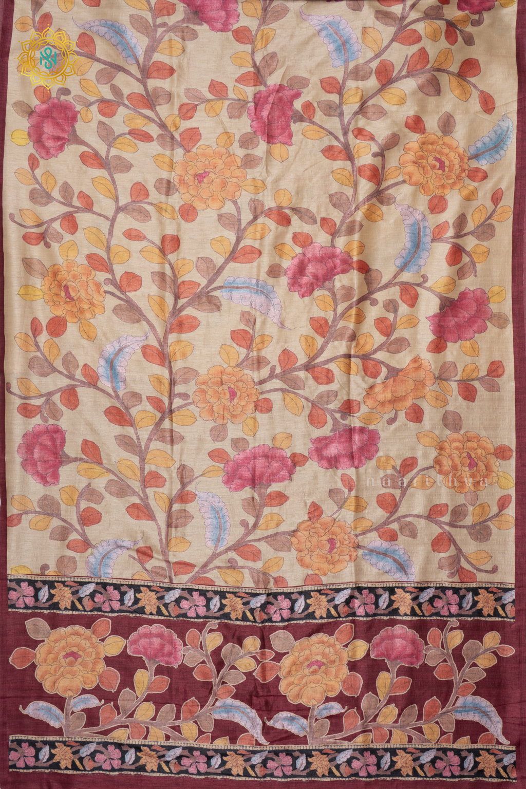 OFF WHITE WITH MAROON - SEMI GICHA TUSSAR