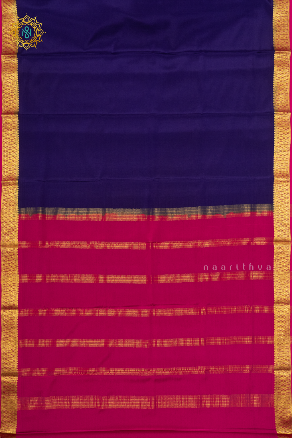 BLUE WITH PINK - PURE MYSORE CREPE SILK