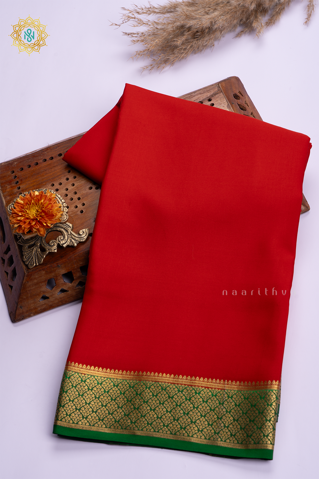 RED WITH GREEN - PURE MYSORE CREPE SILK