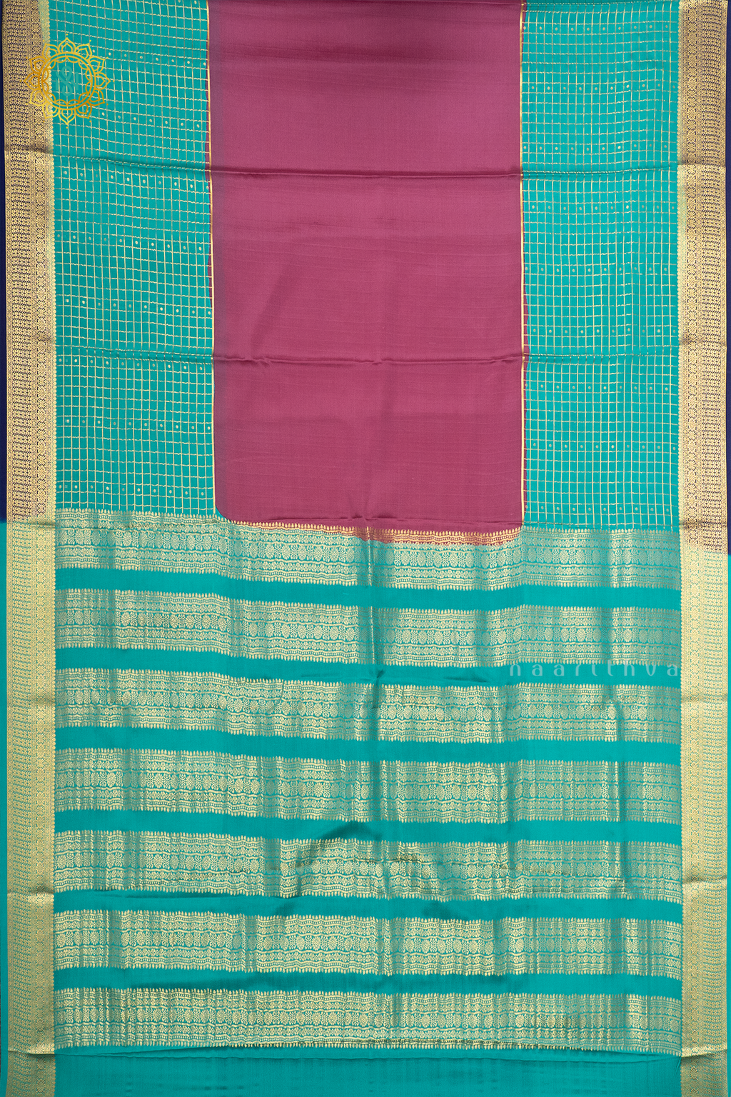 PINKISH LAVENDER WITH AQUA GREEN & BLUE - PURE MYSORE CREPE SILK
