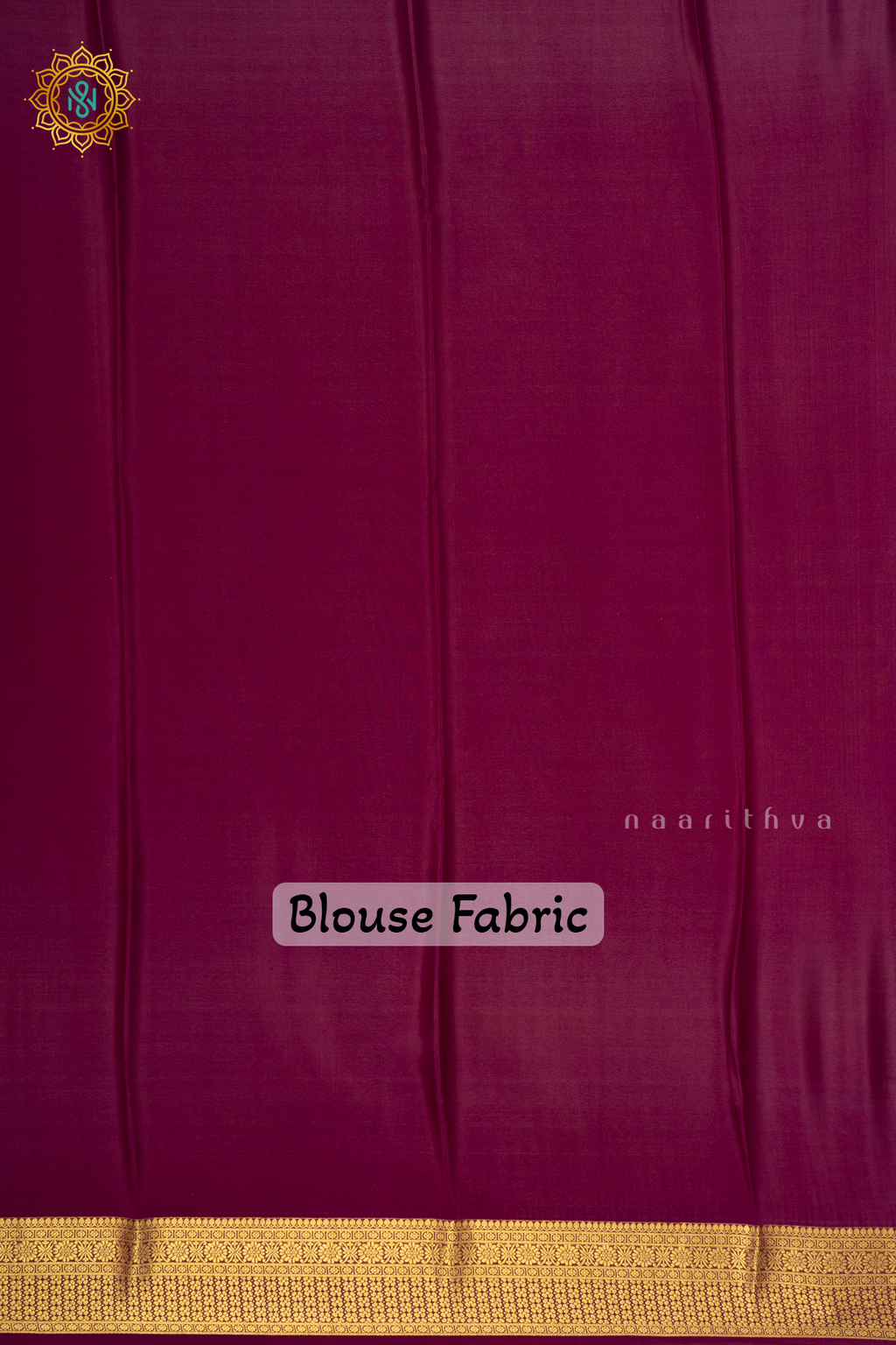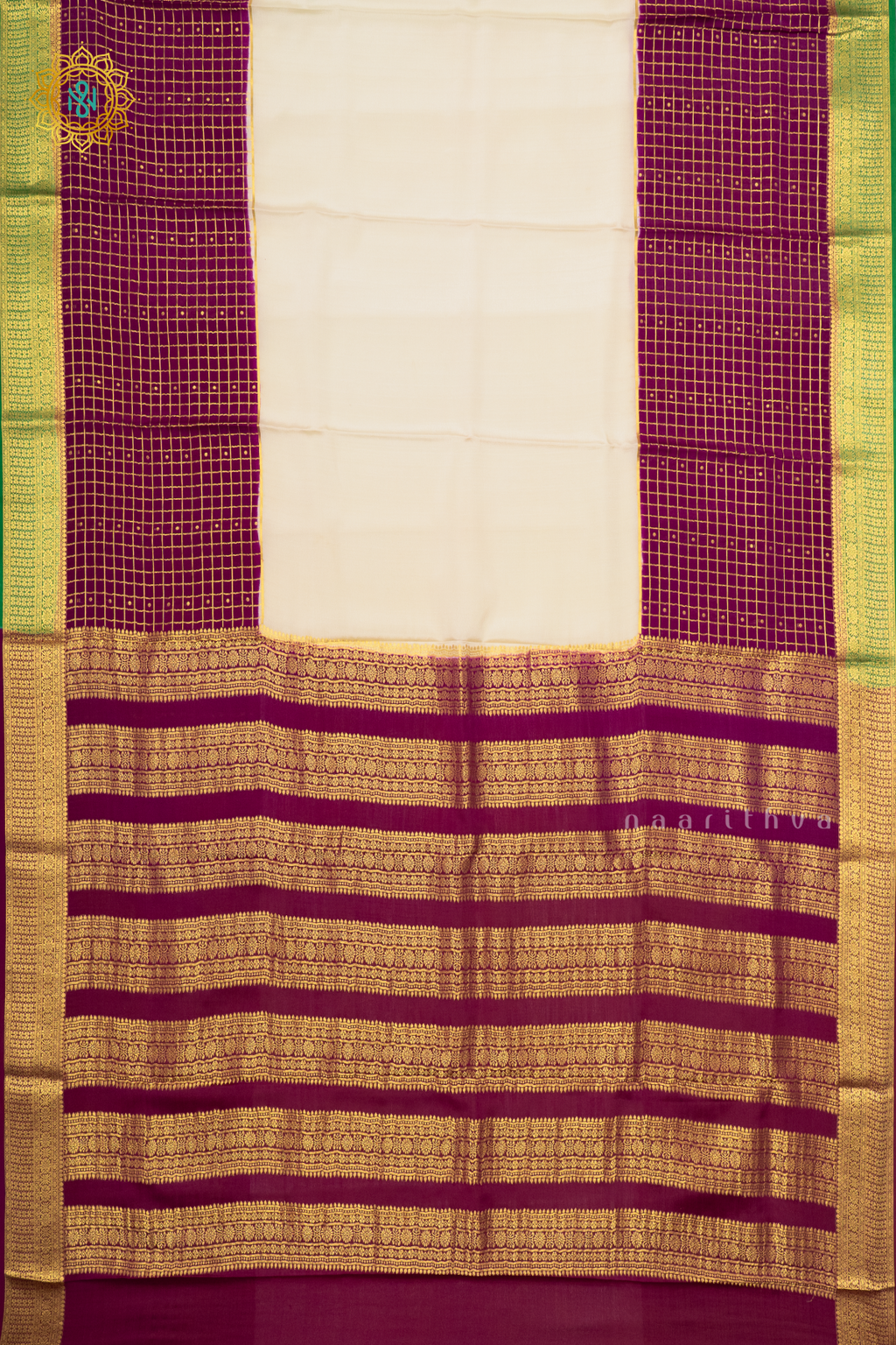 WHITE WITH WINE & GREEN - PURE MYSORE CREPE SILK