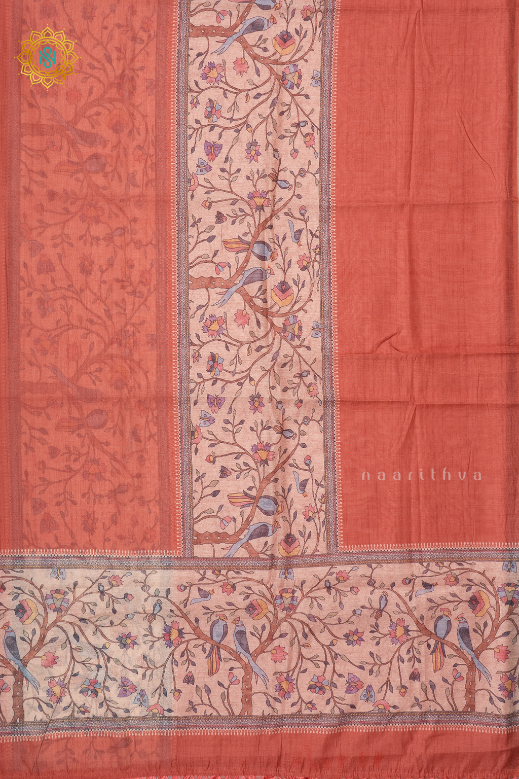 BROWN WITH OFF WHITE - CHANDERI COTTON
