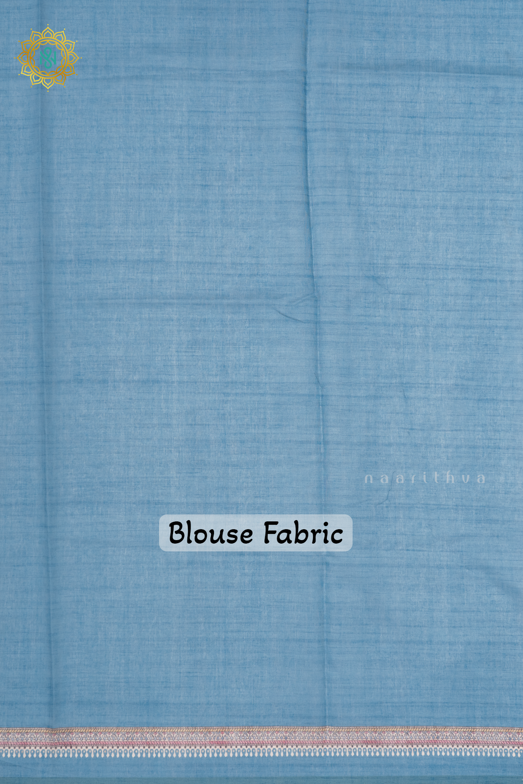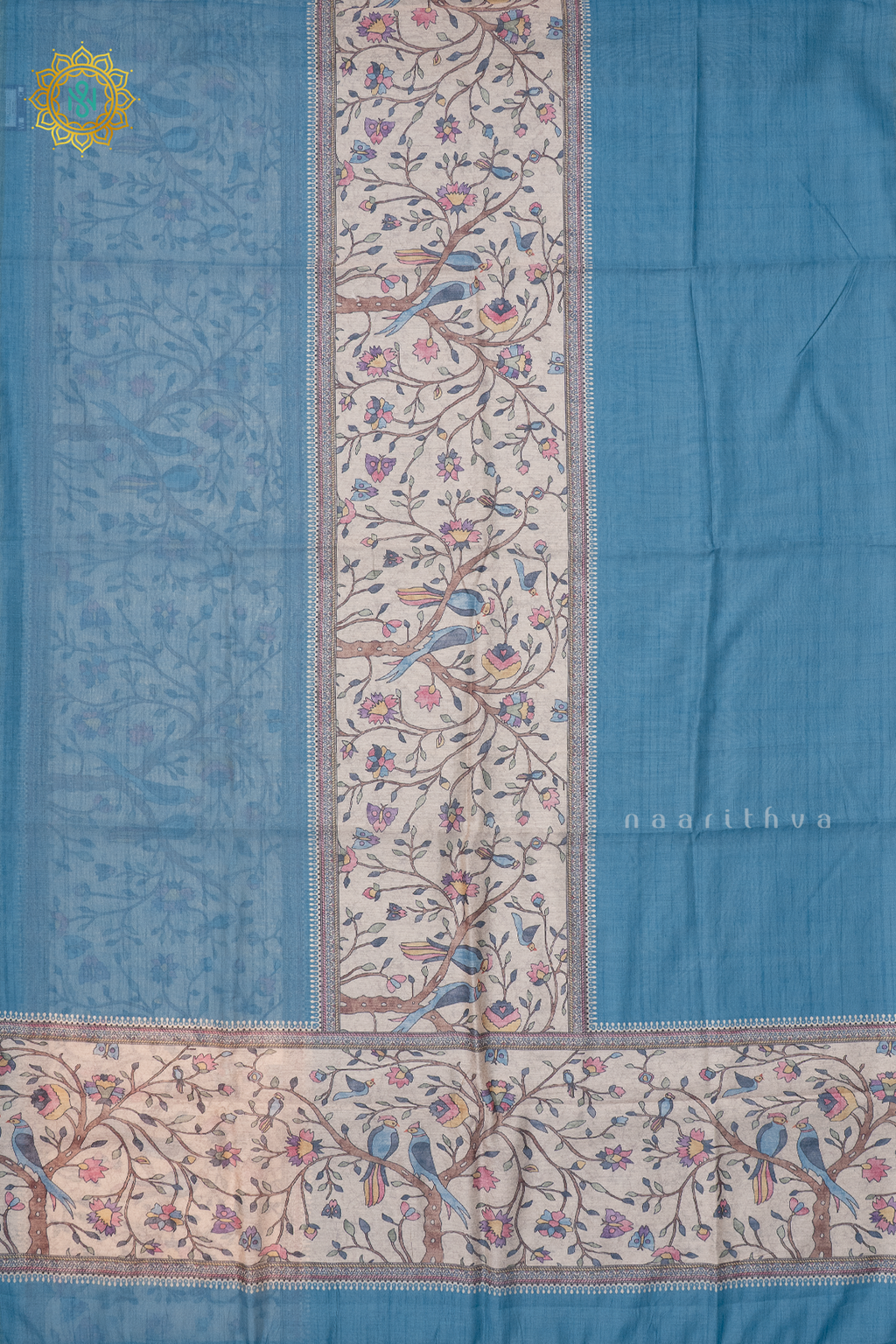 BLUE WITH OFF WHITE - CHANDERI COTTON