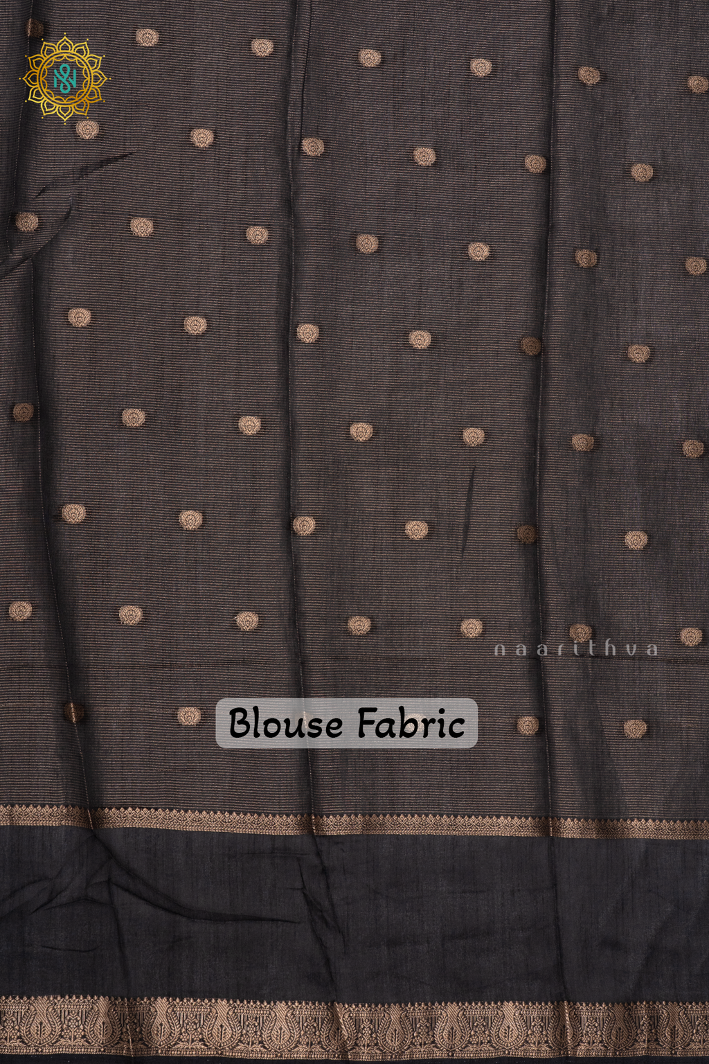 • Design : Zari Stripes & Buttas On The Body With Elephant Printed Zari Border, Pallu & Blouse