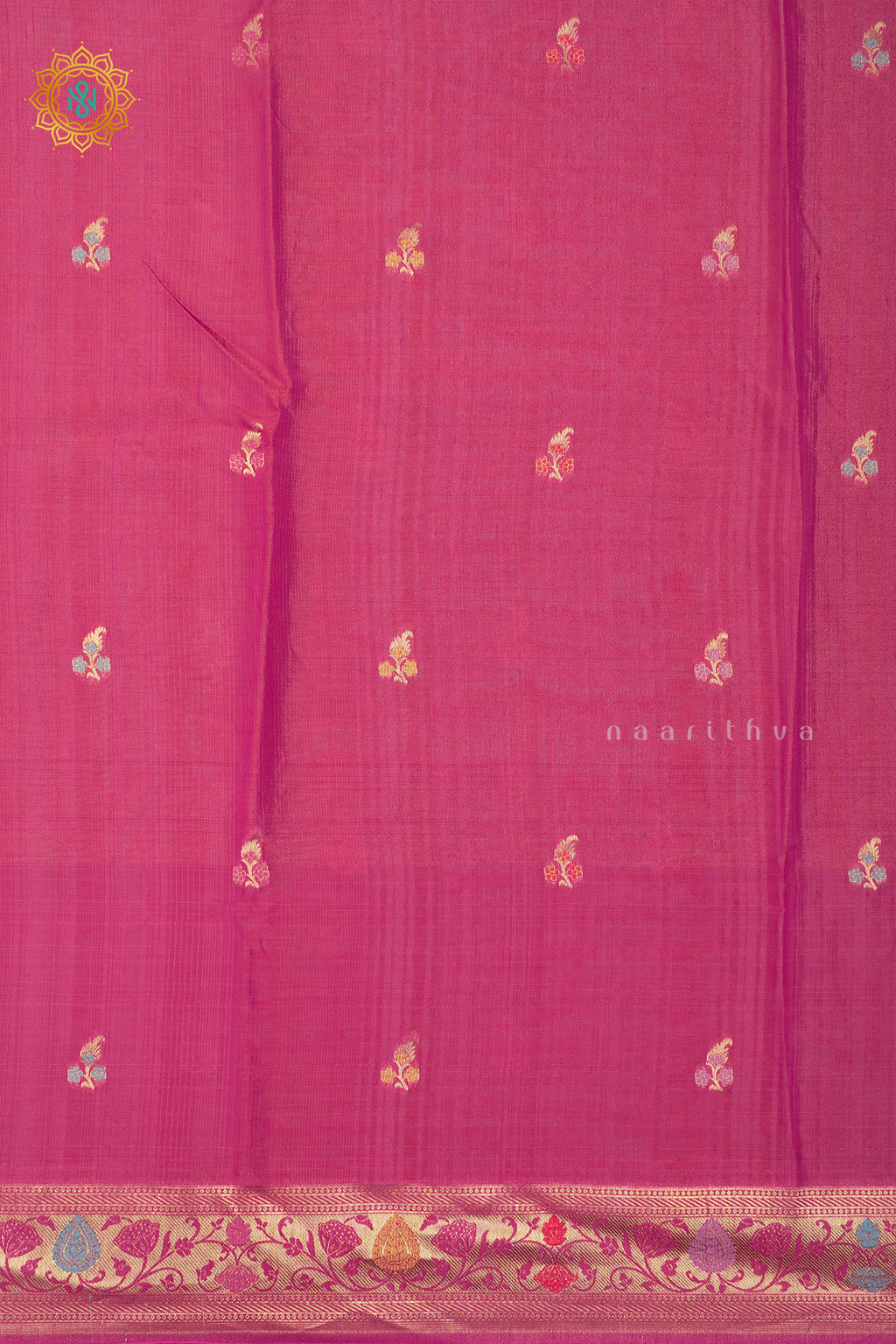 • Design : Zari Buttas All Over The Body With Zari Border, Pallu & Blouse