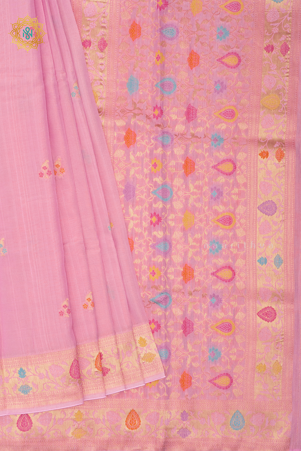 • Design : Zari Buttas All Over The Body With Zari Border, Pallu & Blouse