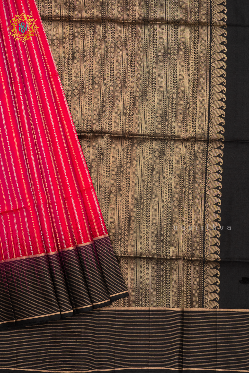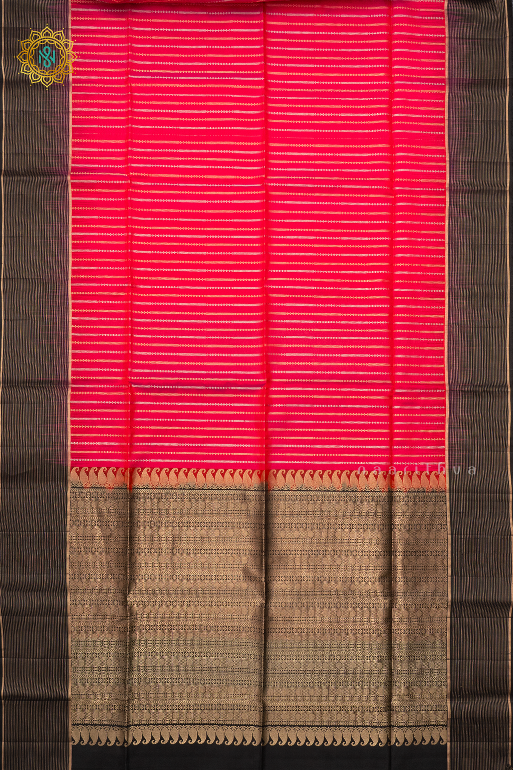 • Design : Zari Stripes On The Body With Contrast Zari Border, Pallu & Blouse