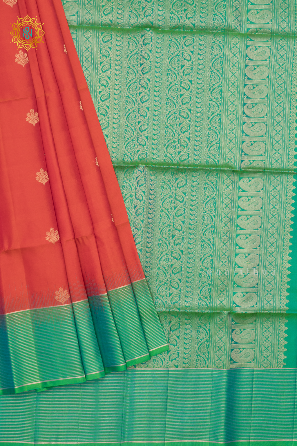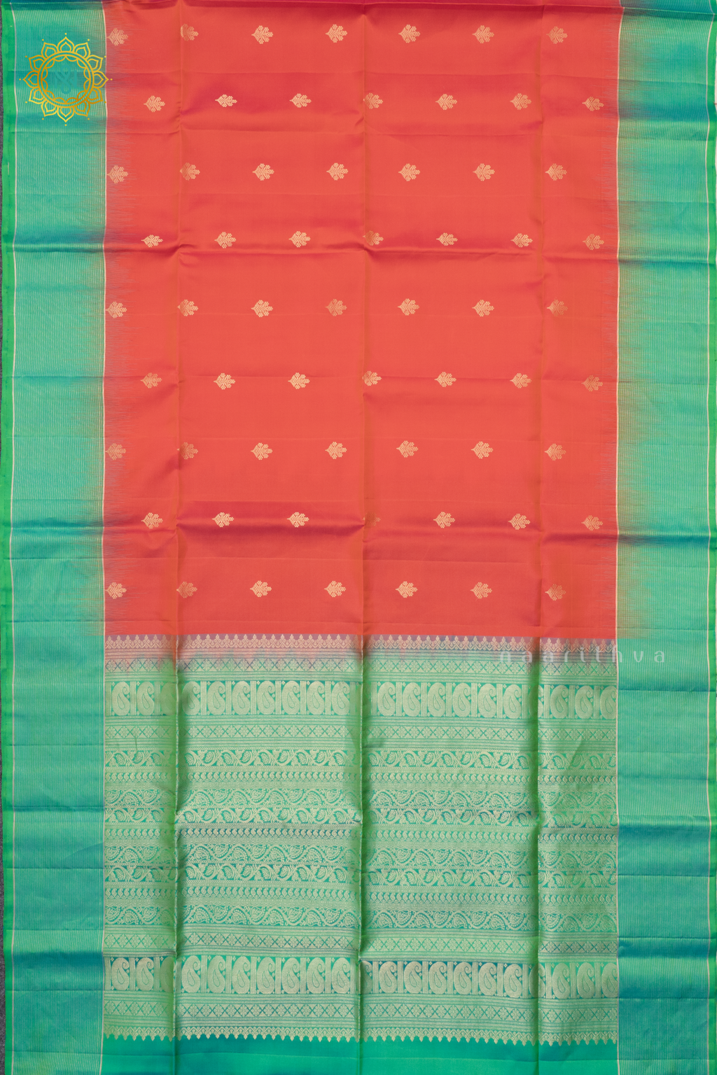 • Design : Zari Buttas On The Body With Contrast Zari Border, pallu & Blouse