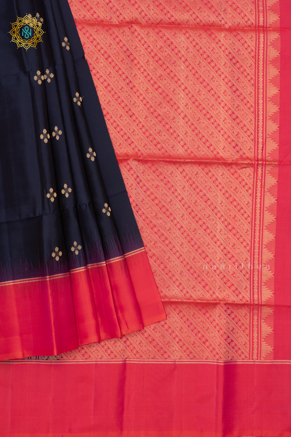 NAVY BLUE WITH DUAL SHADE OF PINK - PURE KANJIVARAM SOFT SILK