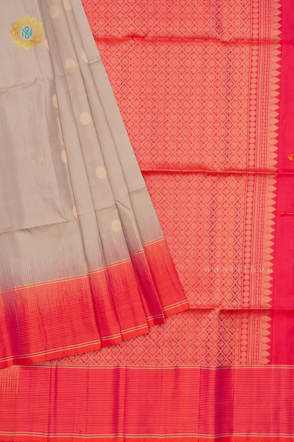 OFF WHITE WITH PINKISH ORANGE - PURE KANJIVARAM SOFT SILK