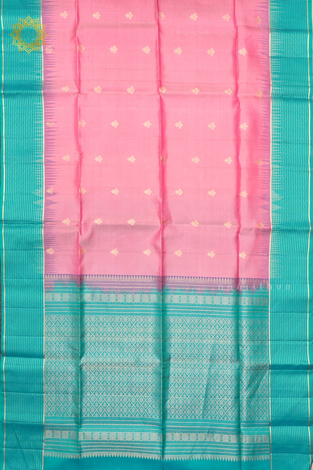 LIGHT PINK WITH AQUA GREEN - PURE KANJIVARAM SOFT SILK