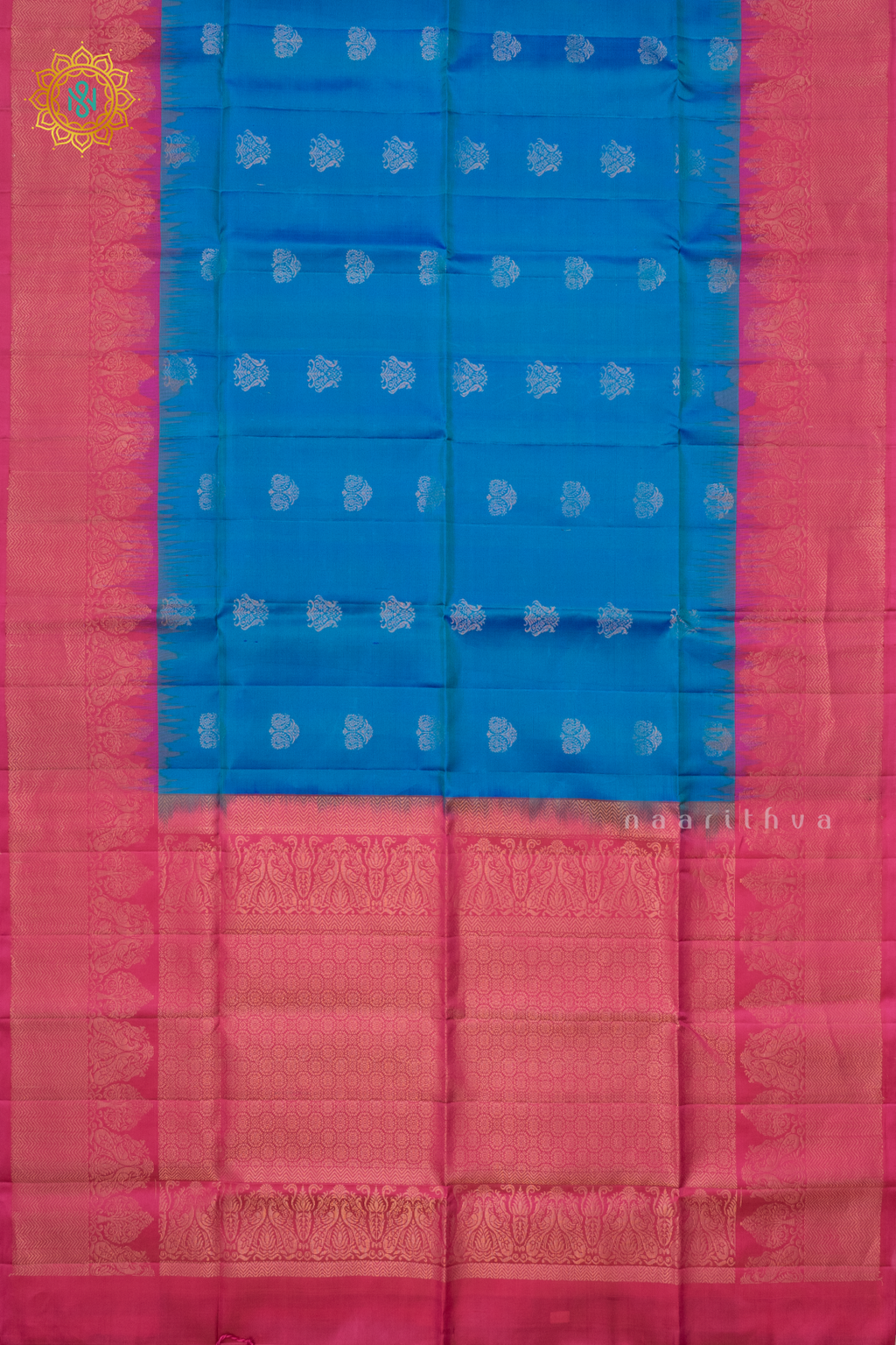 PEACOCK BLUE WITH PINK - PURE KANJIVARAM SOFT SILK