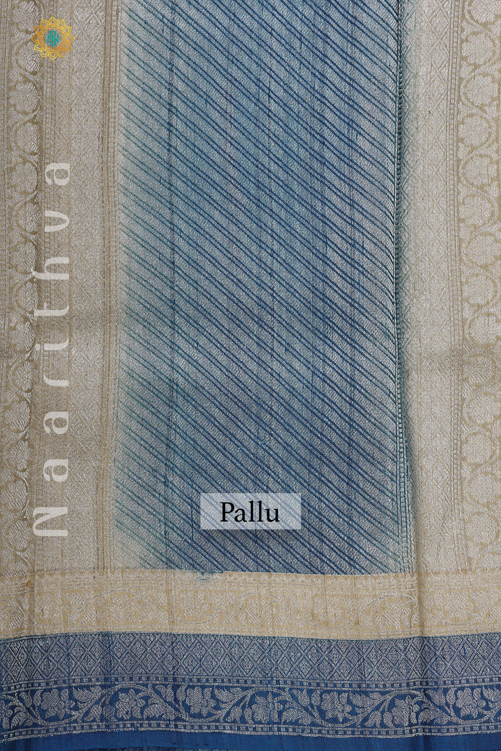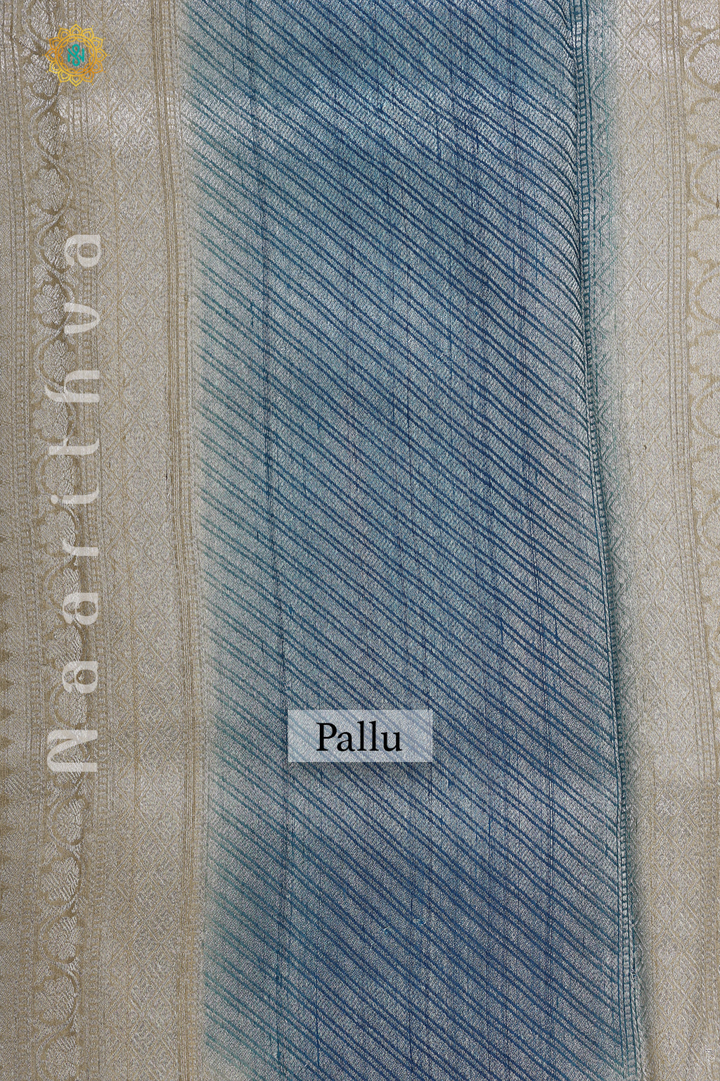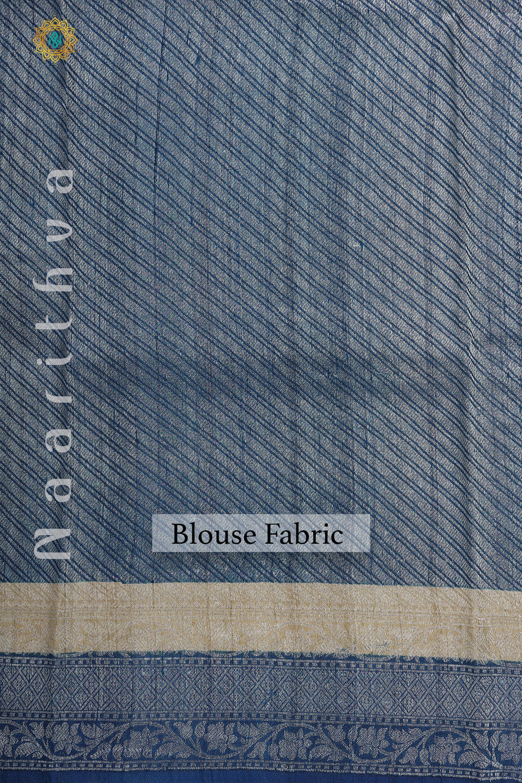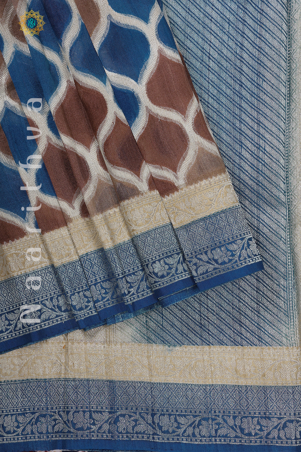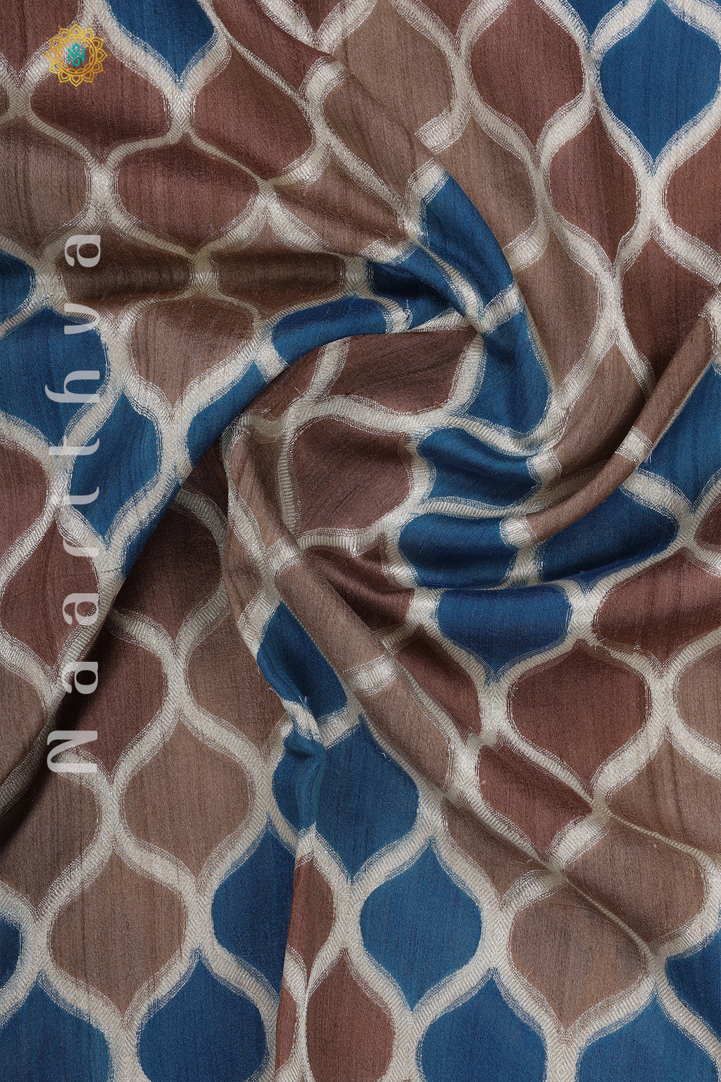 BROWN WITH BLUE - PURE TUSSAR SILK