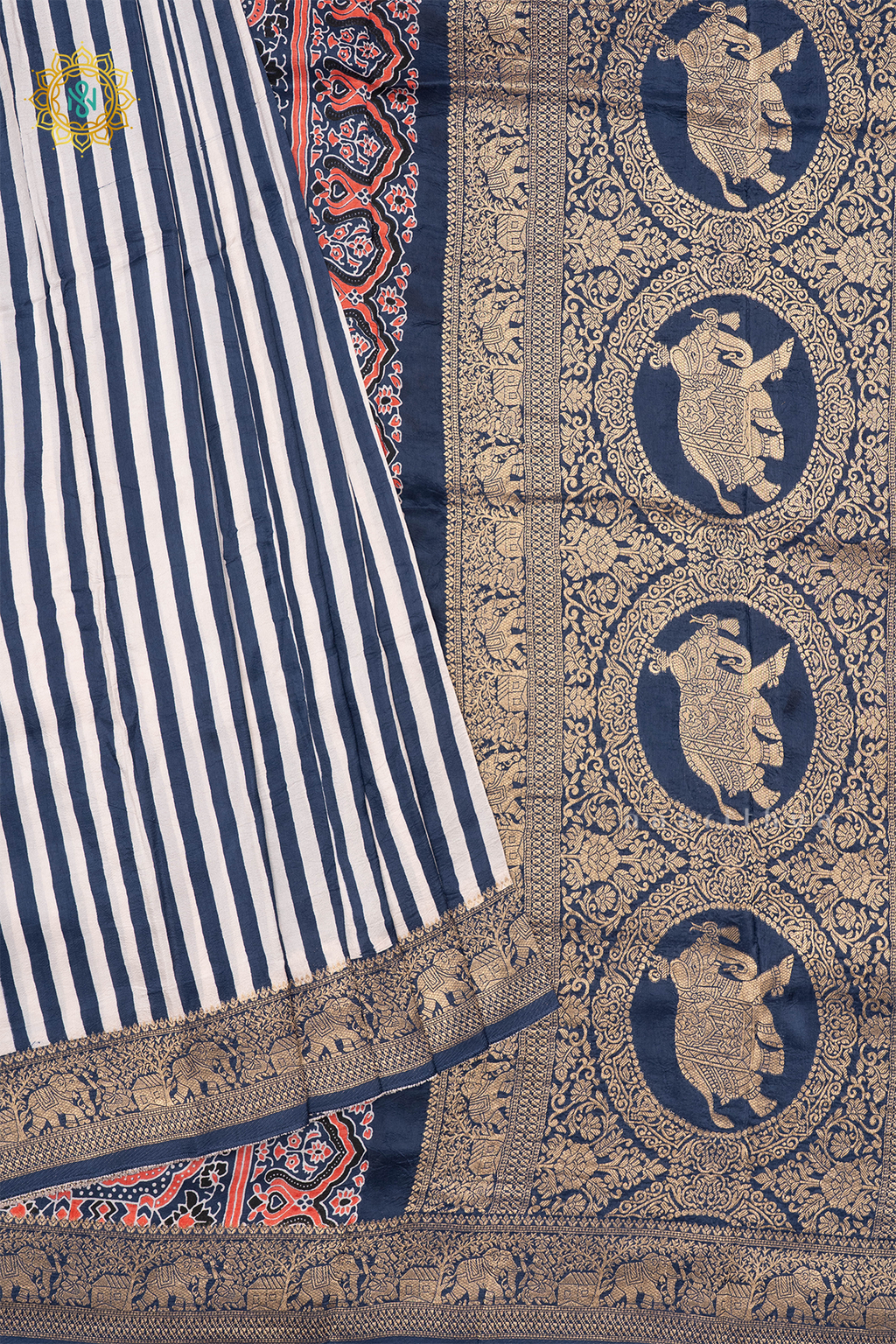 • Design : Stripes On The Body With Zari Border, Pallu & Blouse
