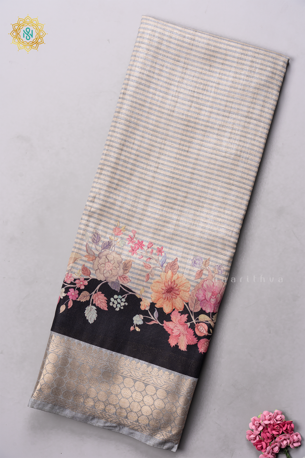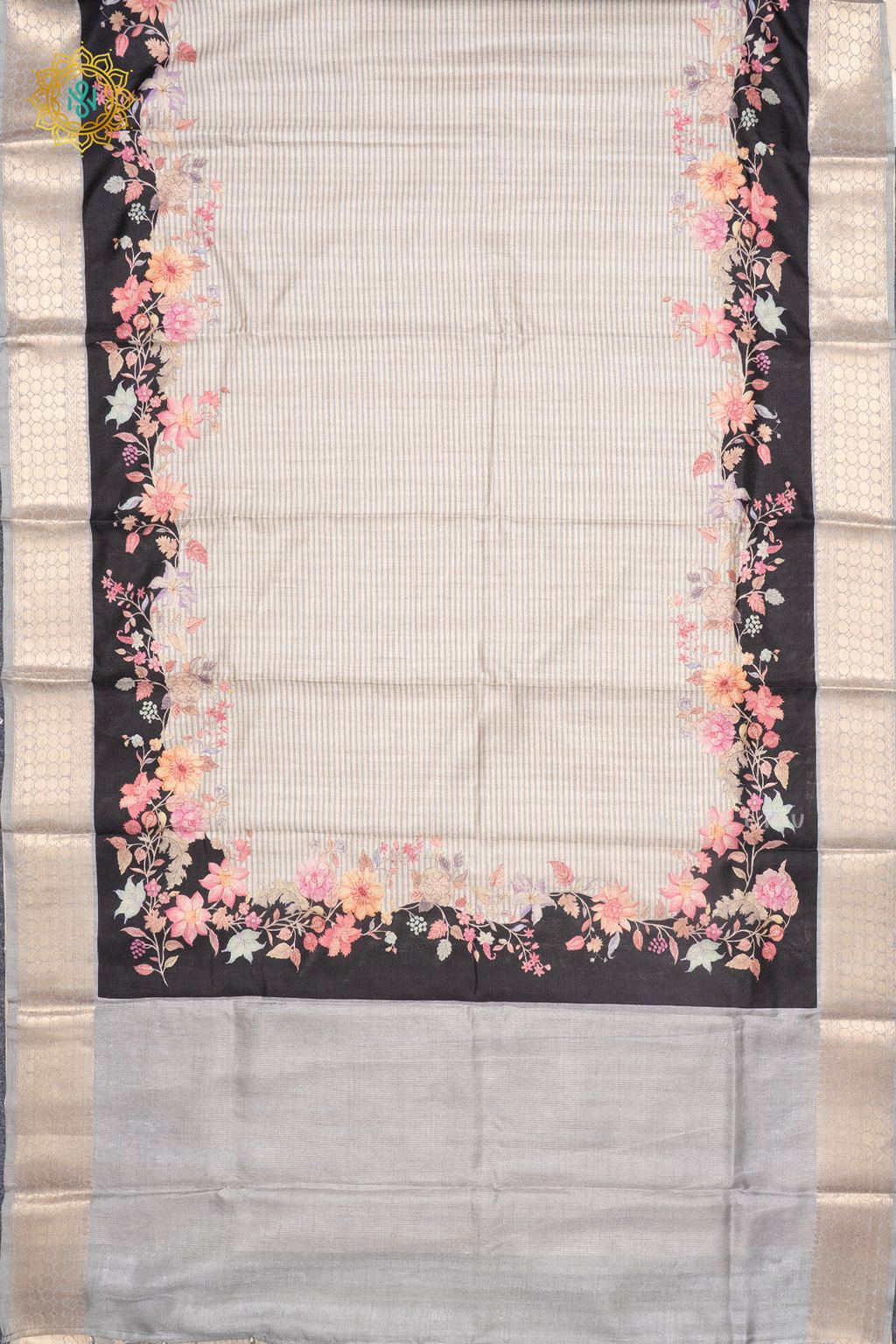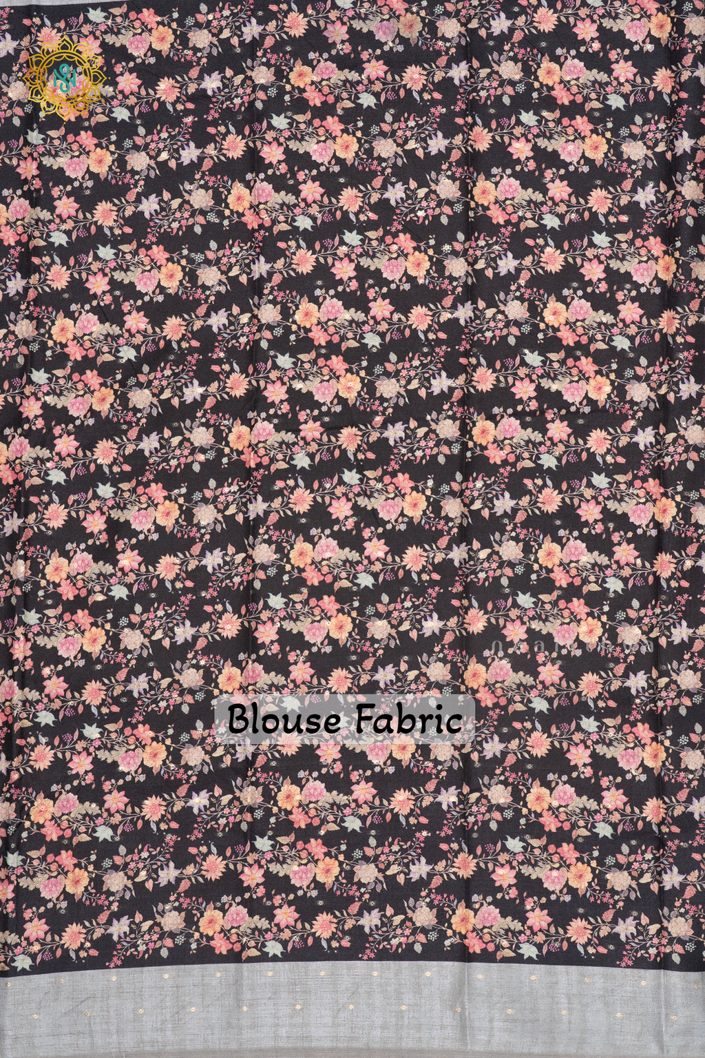 • Design : Printed Body With Zari Border, Pallu & Contrast Blouse