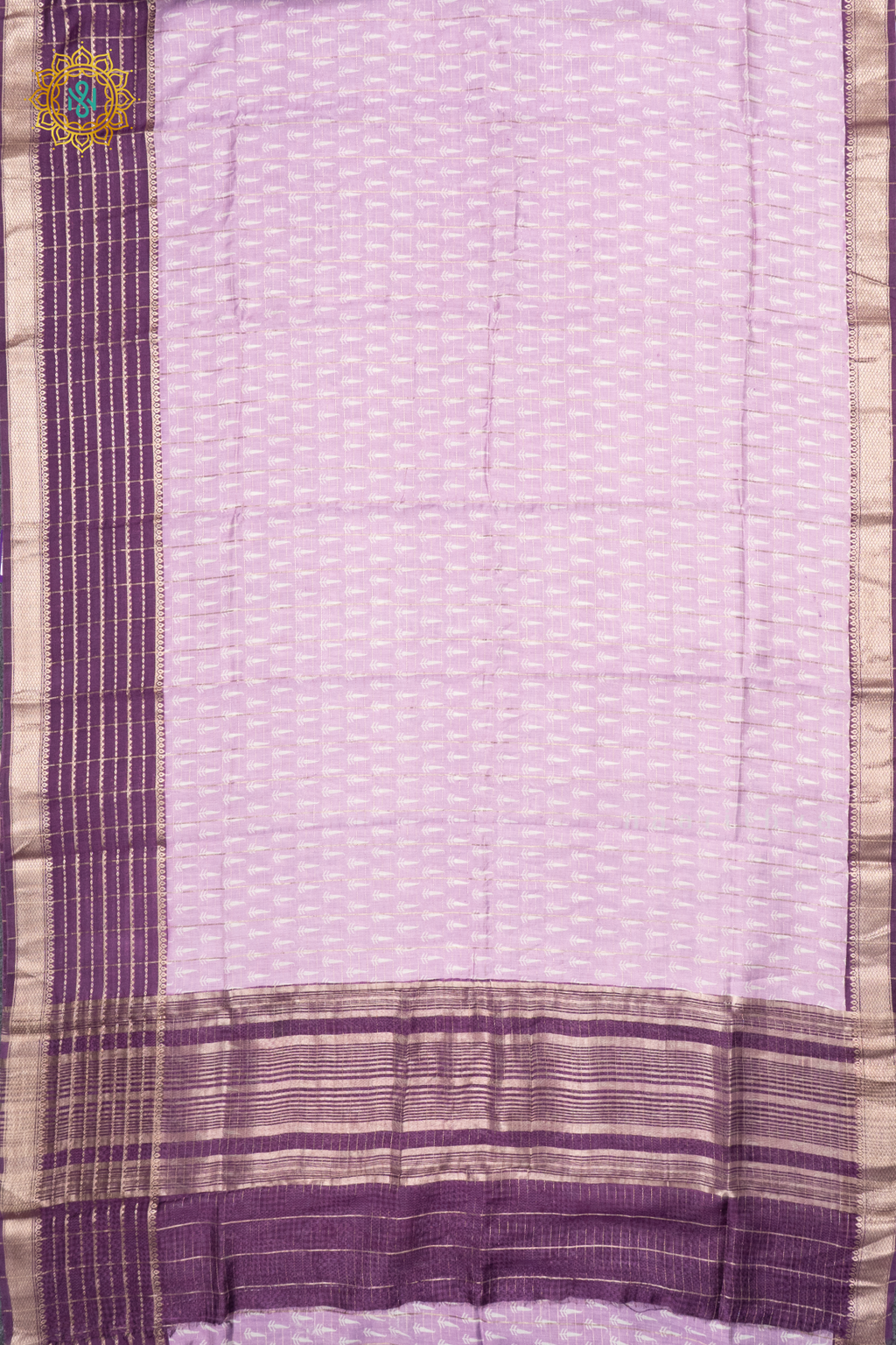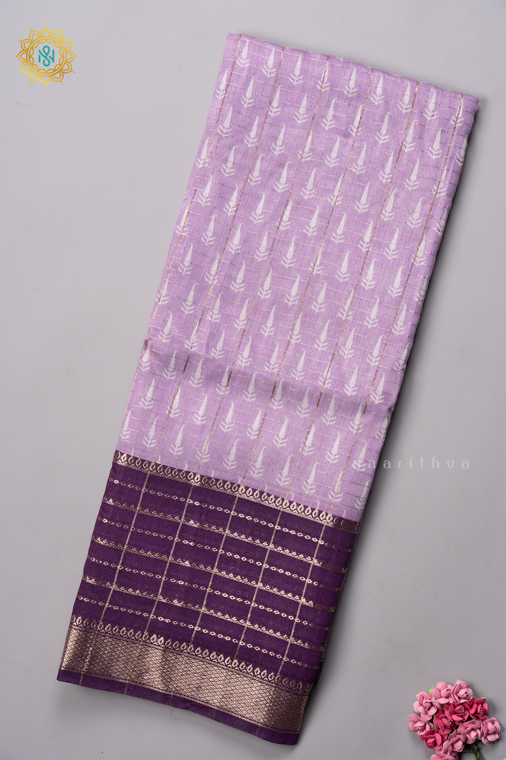 • Design : Zari Checks & Printed Body With Contrast Zari Border, Pallu & Blouse