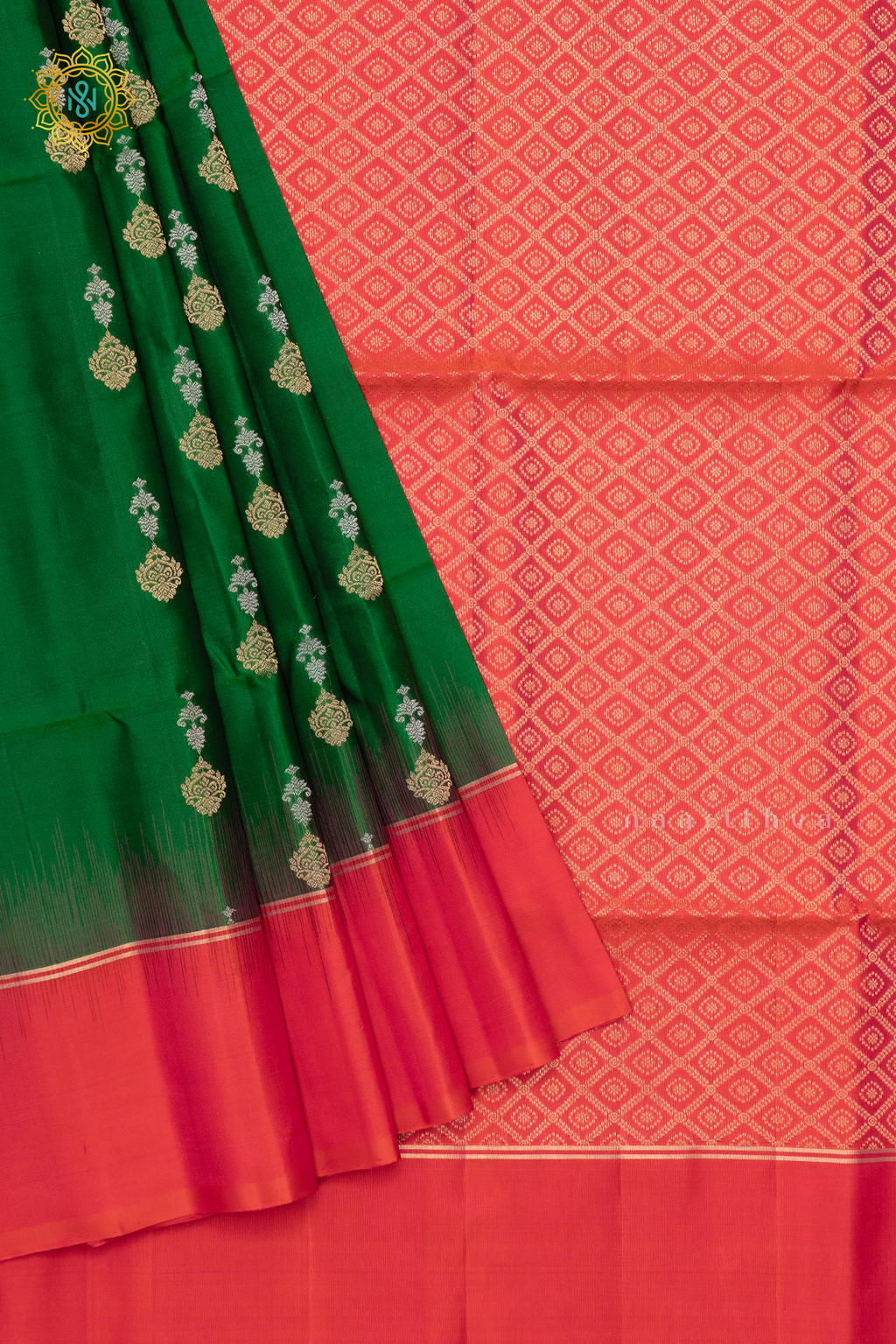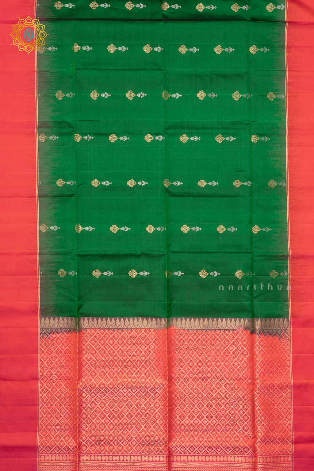 GREEN WITH DUAL SHADE OF PINK - PURE KANJIVARAM SOFT SILK