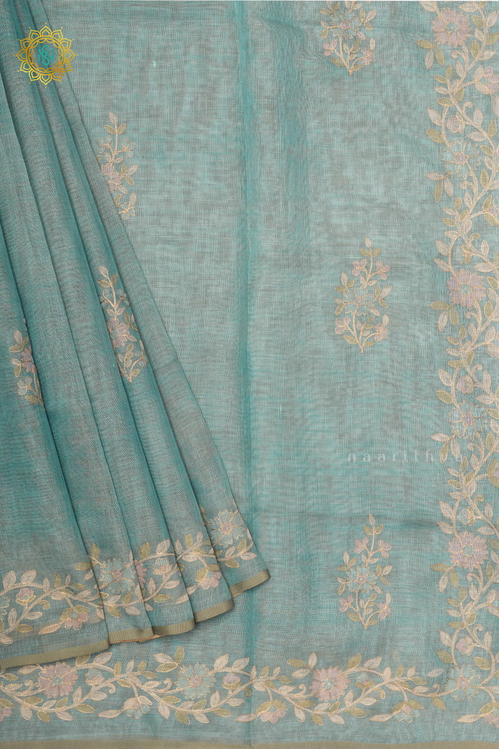 • Design : Printed & Aari Work On The Body With Tissue Border, Pallu & Blouse